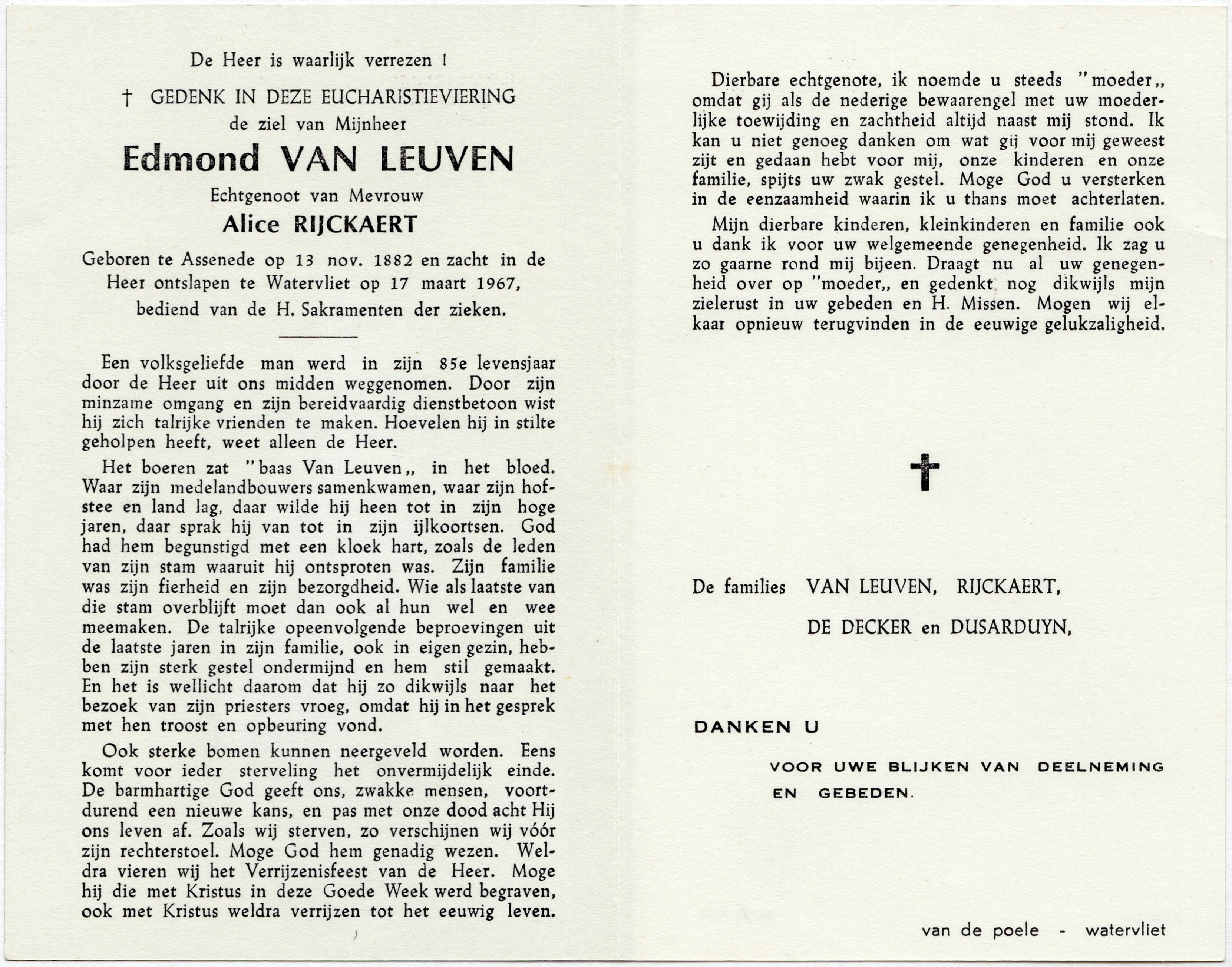 Van Driessen, Petrus (Koewacht 18/7/1890 - Watervliet 23/6/1967- e. Van Dde Vijver, Leonia