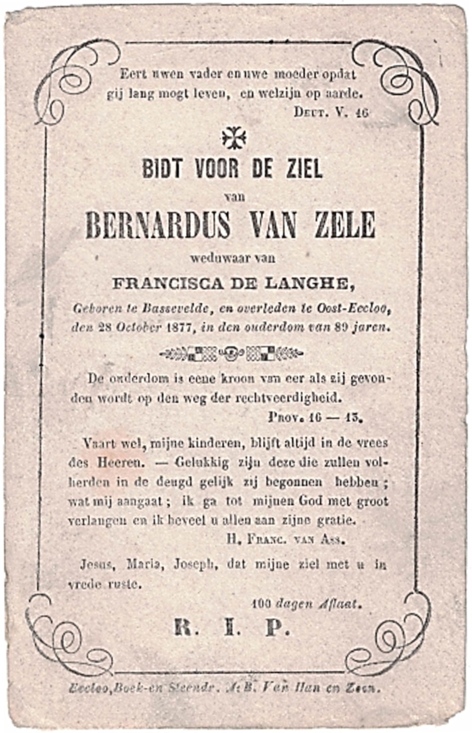 Zijn zoon Bernard was van de militielichting 1839; via notaris Dauwe van