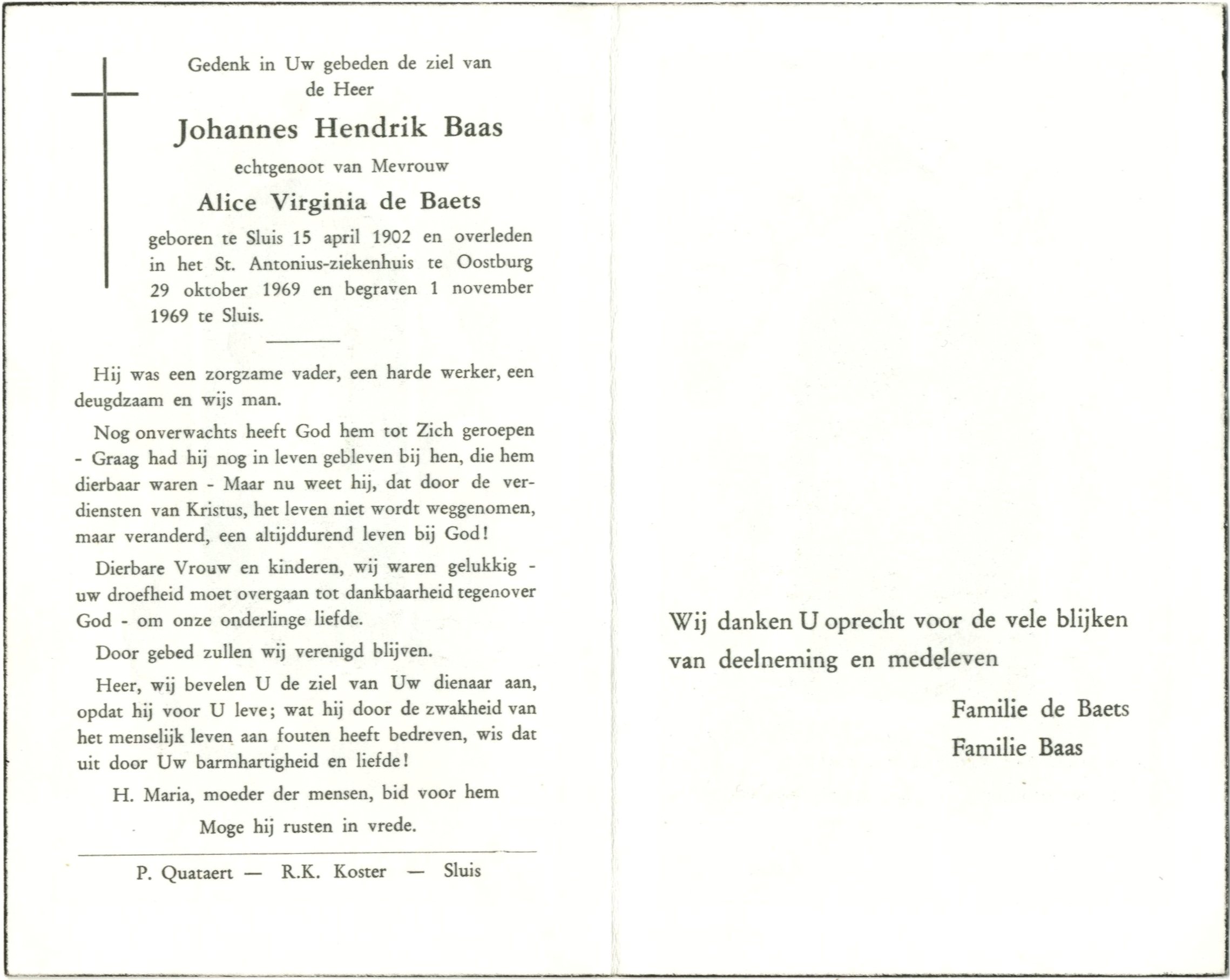 begraven 1 november 1969 te Sluis.