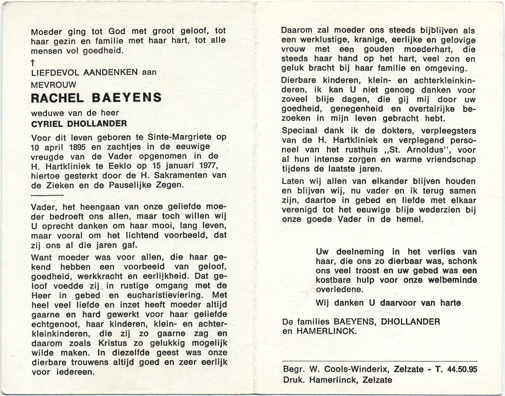en zachtjes in de eeuwige vreugde van de Vader opgenomen in de H. Hartkliniek te Eeklo op 15 januari 1977.