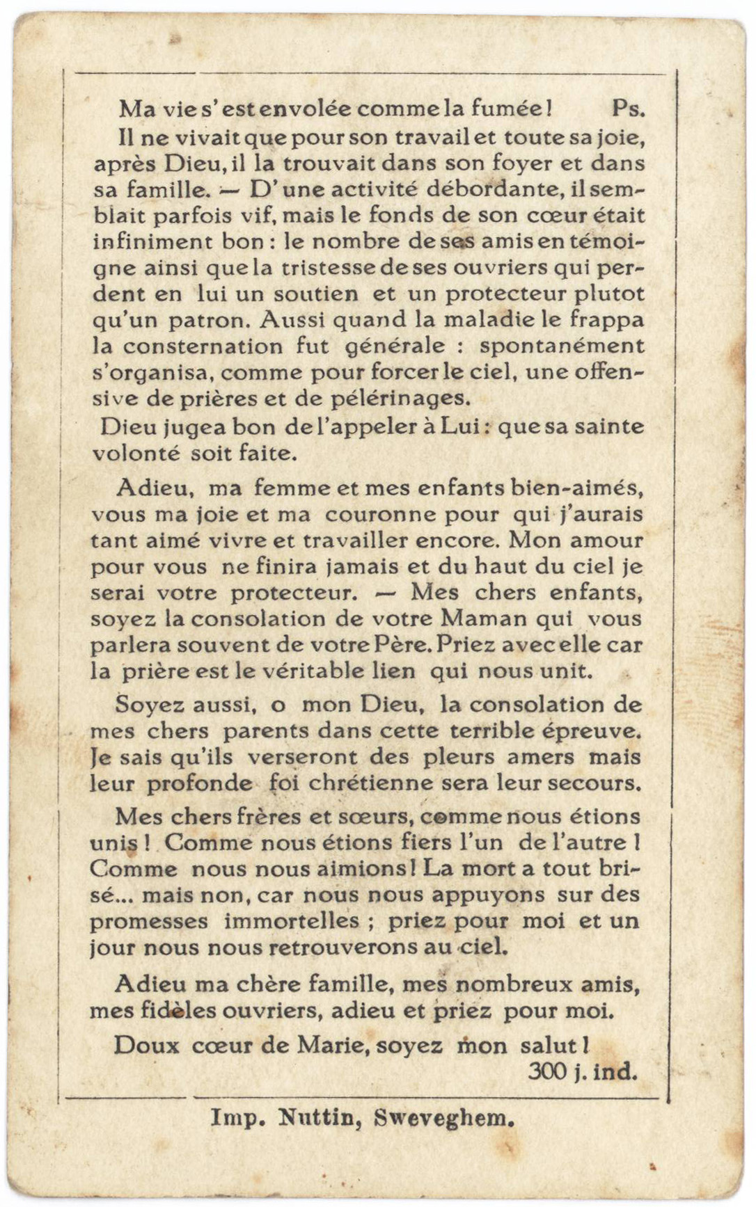 Onze beste dank voor dit aandenken aan Mevr. Maurice De Clerck, née Elza Vanderbauwhede.