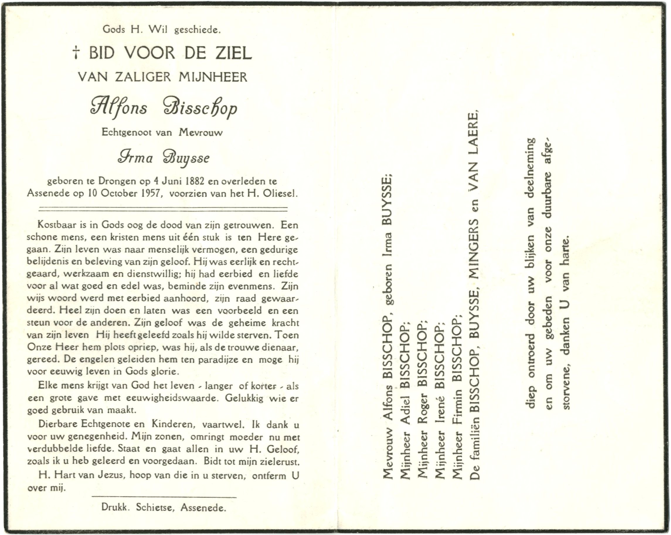 overleden te Assenede op 10 October 1957.