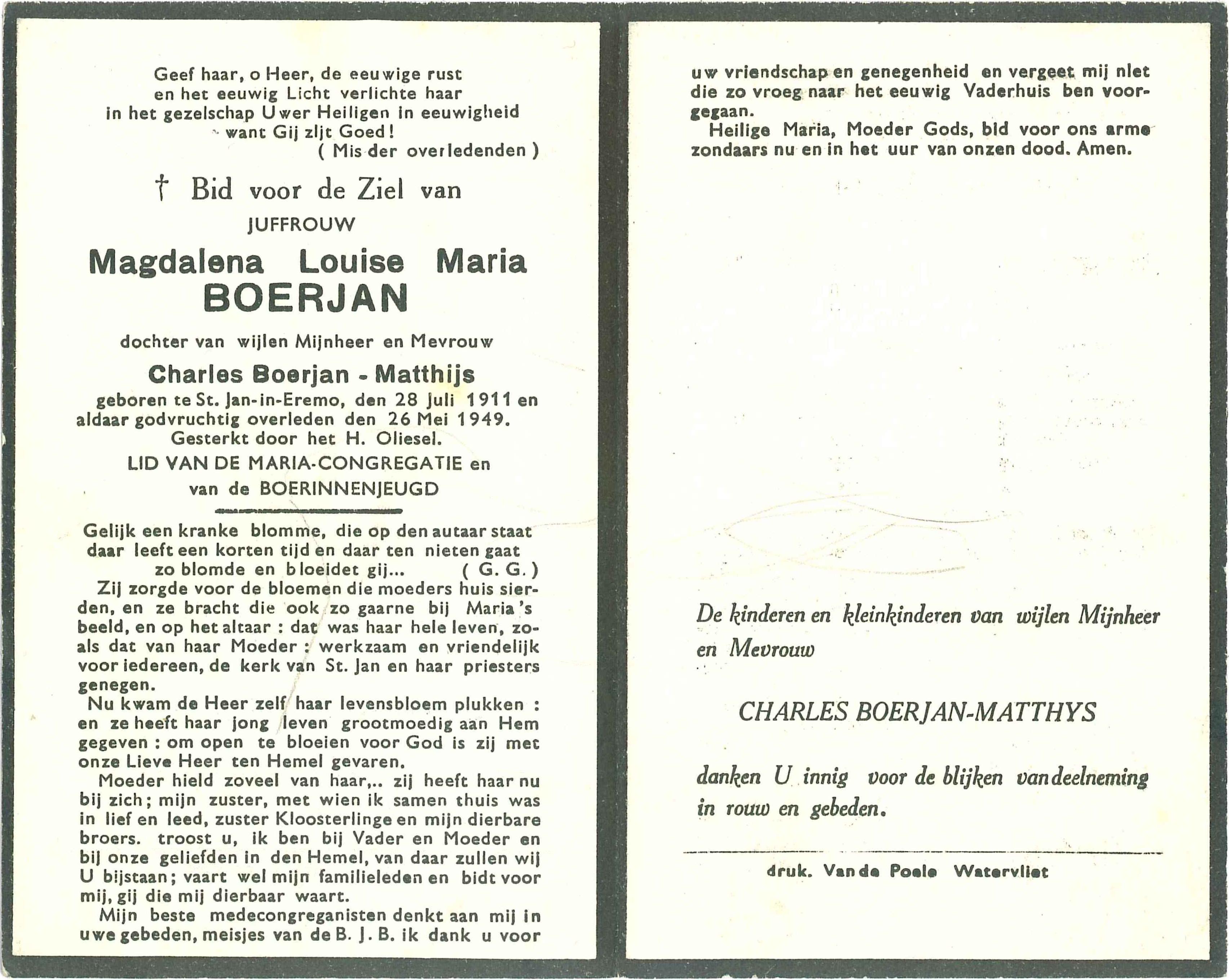 dochter van wijlen Mijnheer en Mevrouw Charles Boerjan - Matthys