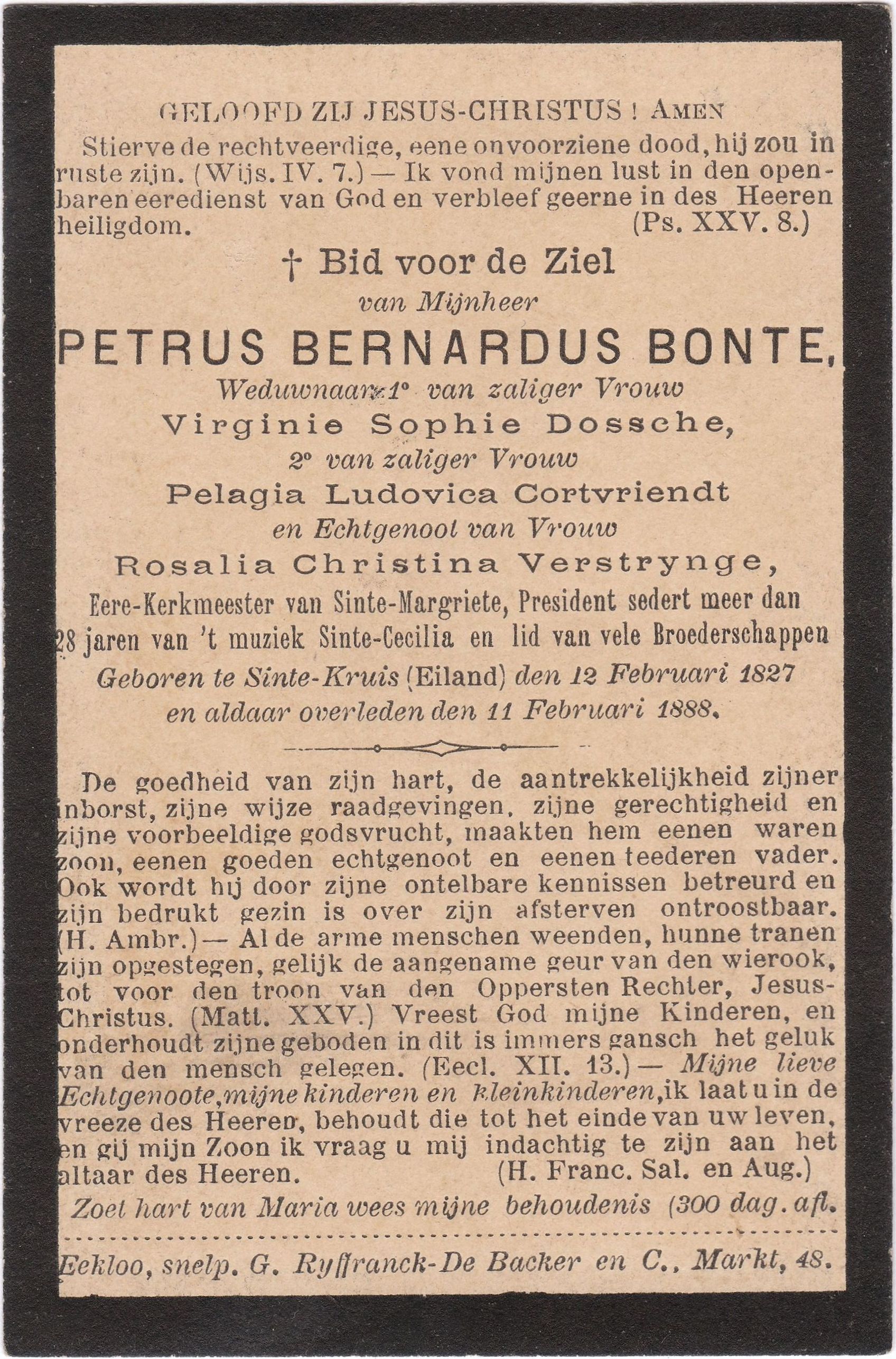 2e van zaliger Vrouw Pelagia Ludovica Cortvriendt en Echtgenoot van Vrouw Rosalia Christina Verstrynge,