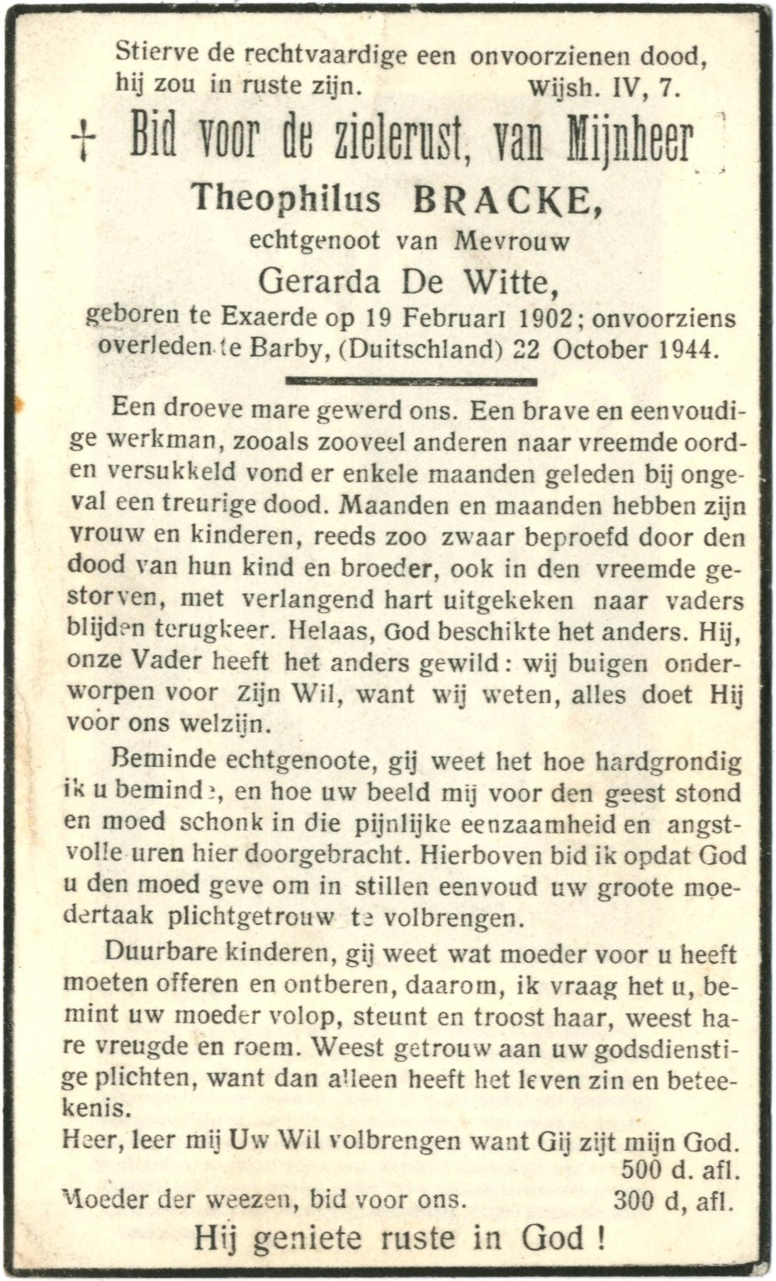 onvoorziens overleden te Barby (Duitsland), 22 October 1944.