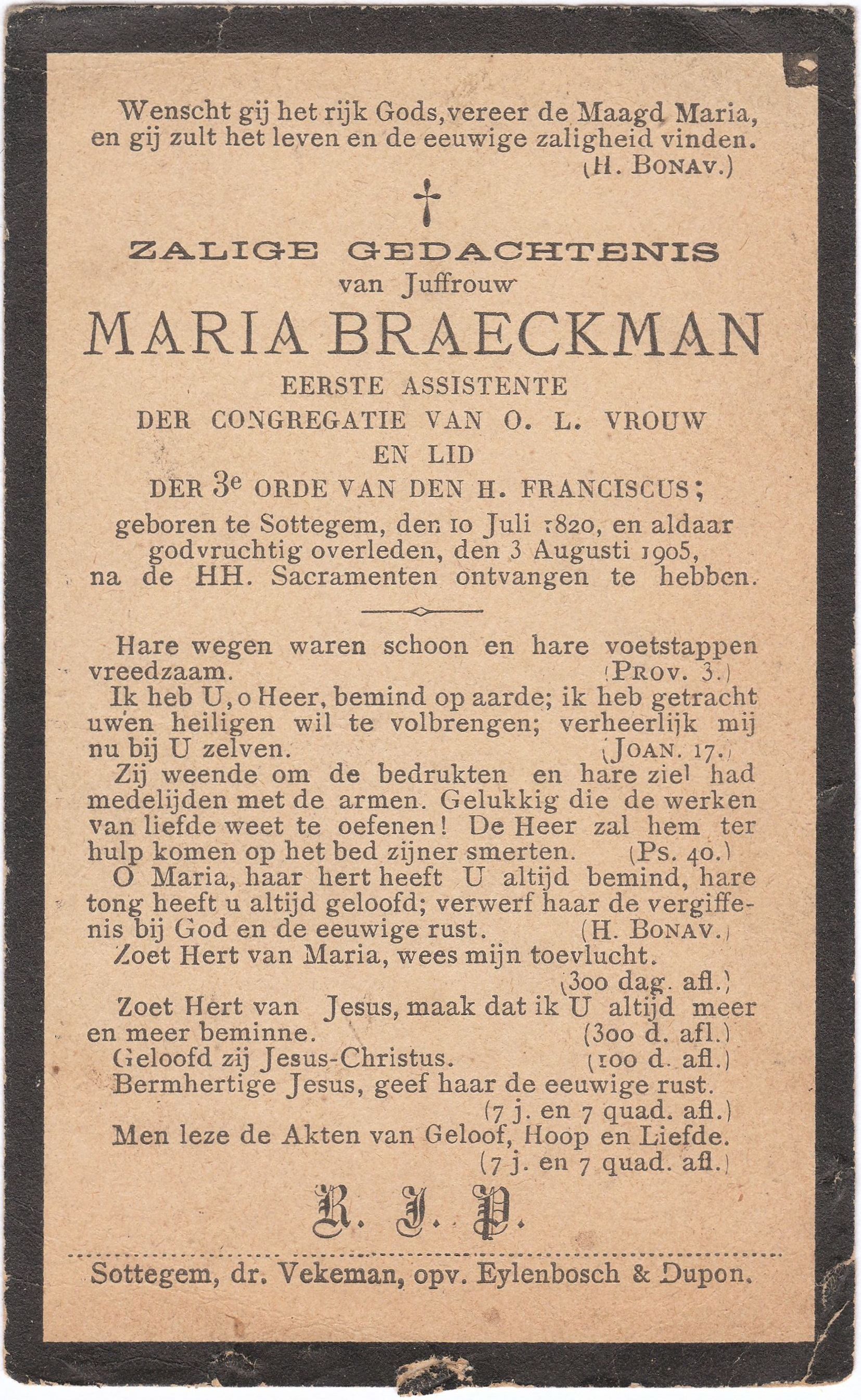 Eerste Assistente der Congregatie van O. L. Vrouw en lid der 3e Orde van den H. Franciscus