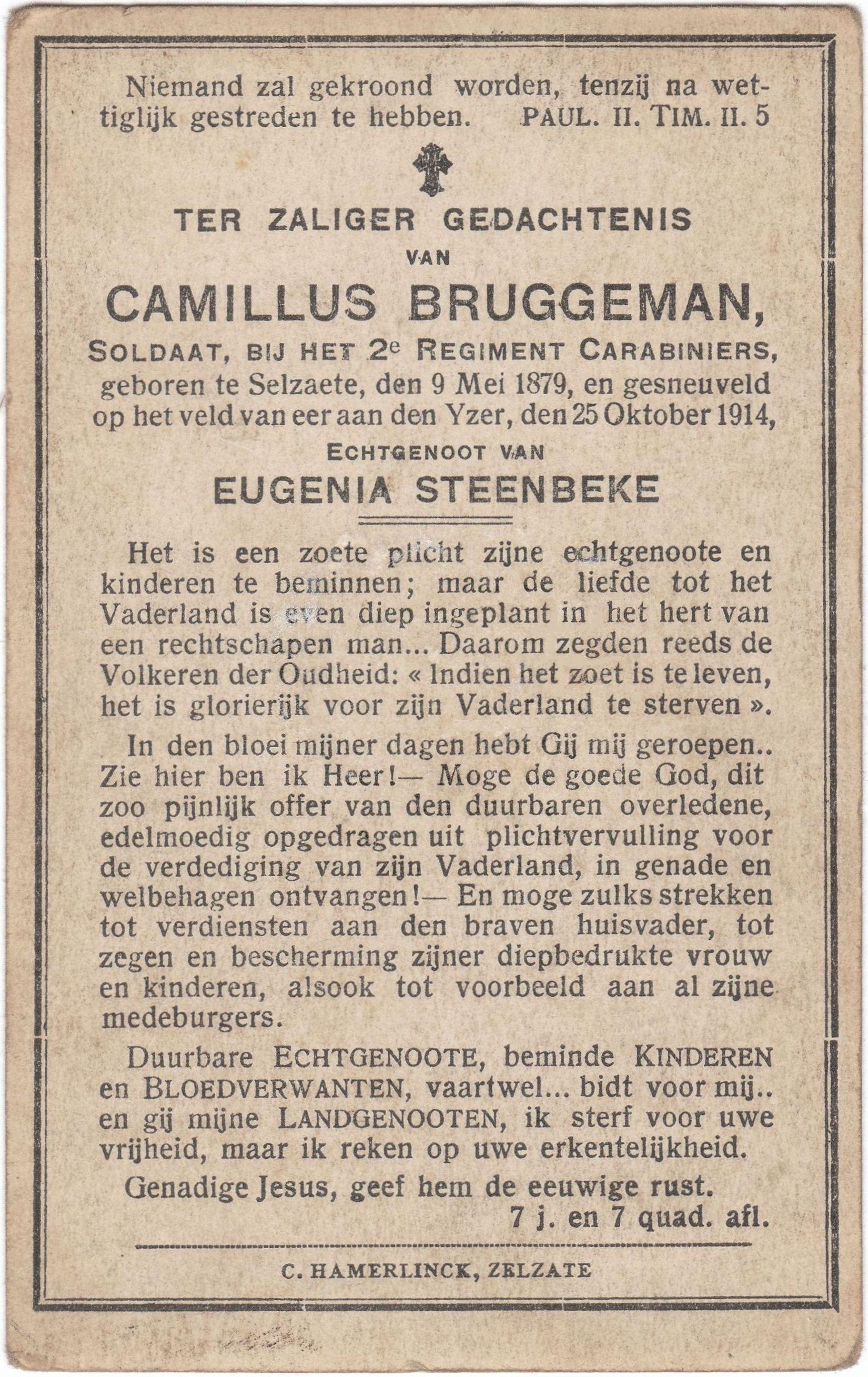 Soldaat bij het 2e Regiment Carabiniers, geboren te Selzaete, den 9 Mei 1879,