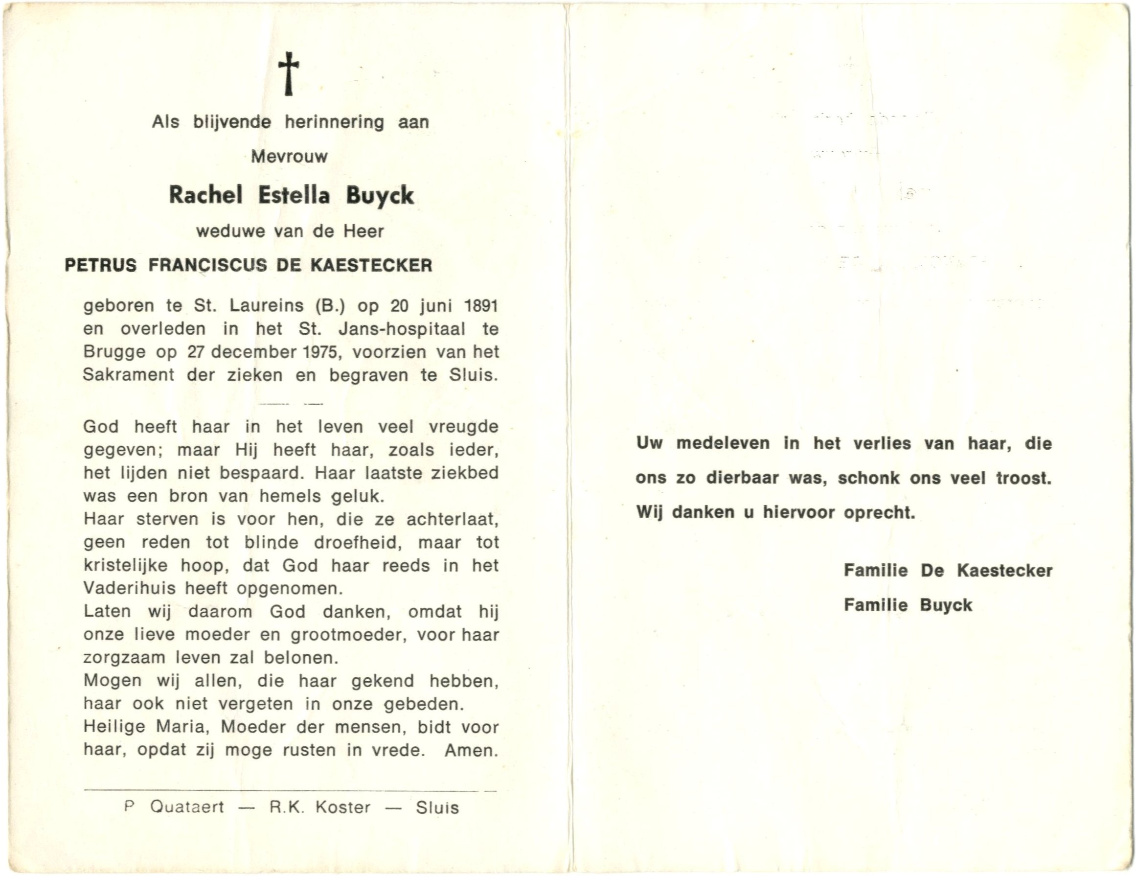 weduwe van de Heer Petrus Franciscus De Kaestecker