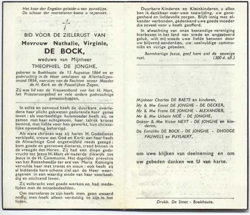 Onze beste dank voor dit aandenken aan de Heer Hubert De Bock (Watervliet).