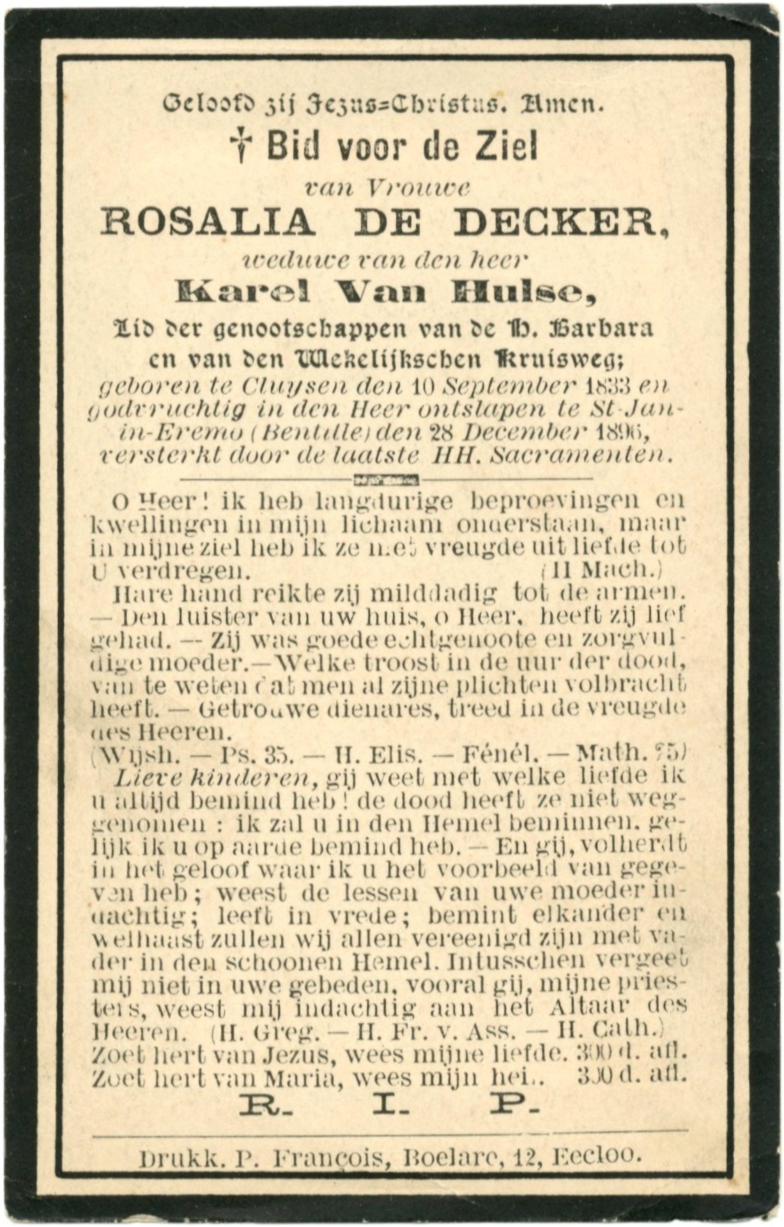 godvruchtig in den Heer ontslapen te St Jan-in-Eremo (Bentille) den 28 December 1896.