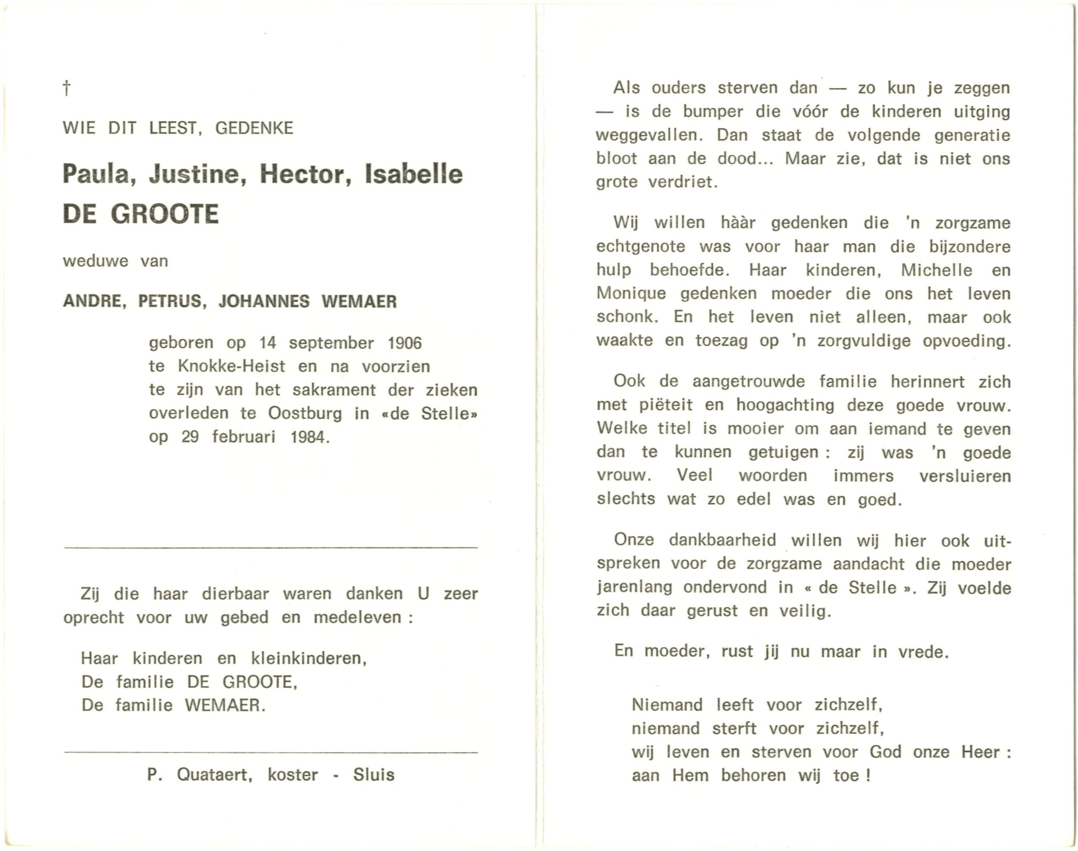 na voorzien te zijn van het sakrament der zieken overleden te Oostburg in «de Stelle» op 29 februari 1984.