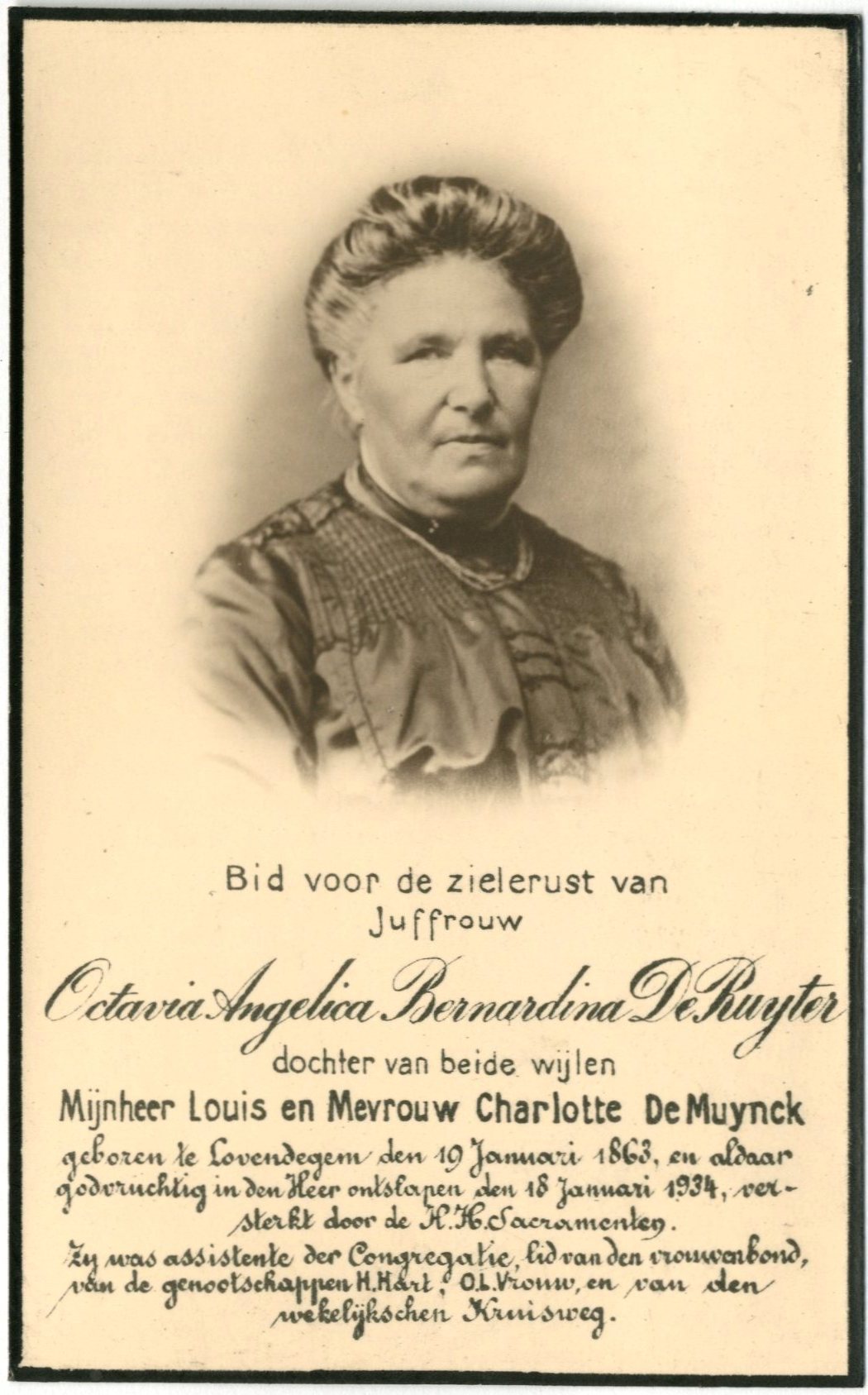dochter van beide wijlen Louis De Ruyter en Charlotte De Muynck