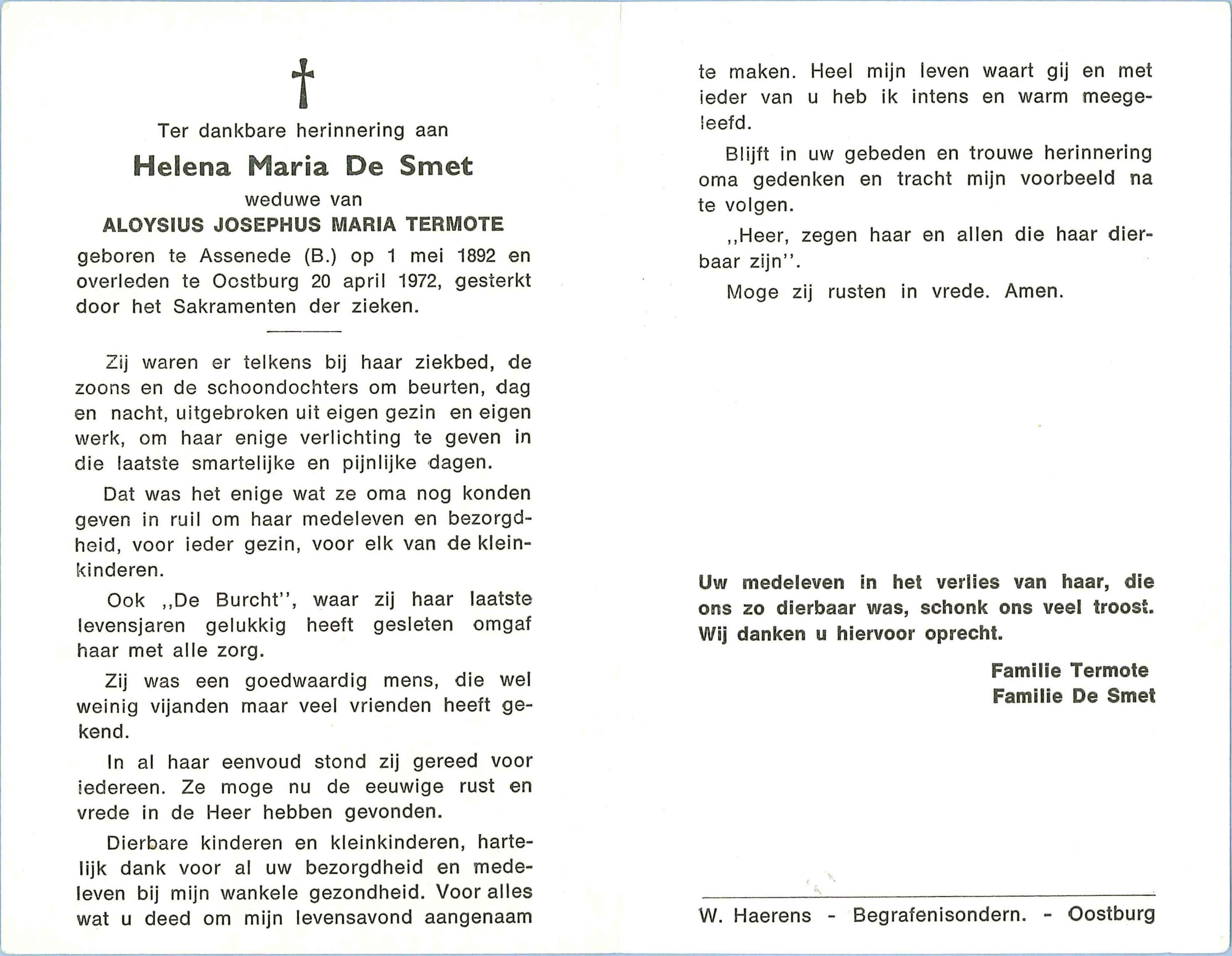 Onze beste dank voor dit aandenken aan Mevr. Hubert Dusarduyn, née Marie-Aimée Van Damme.