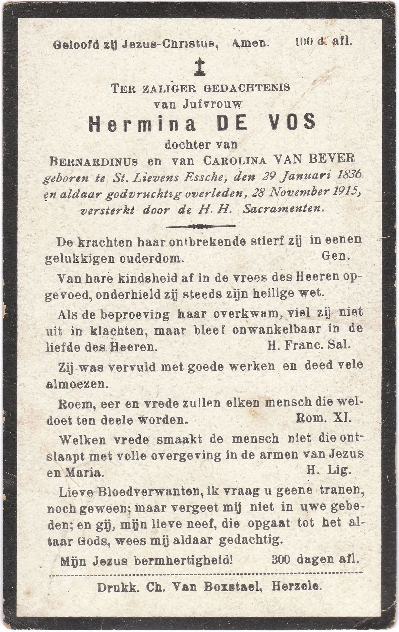dochter van Bernardinus De Vos en van Carolina Van Bever
