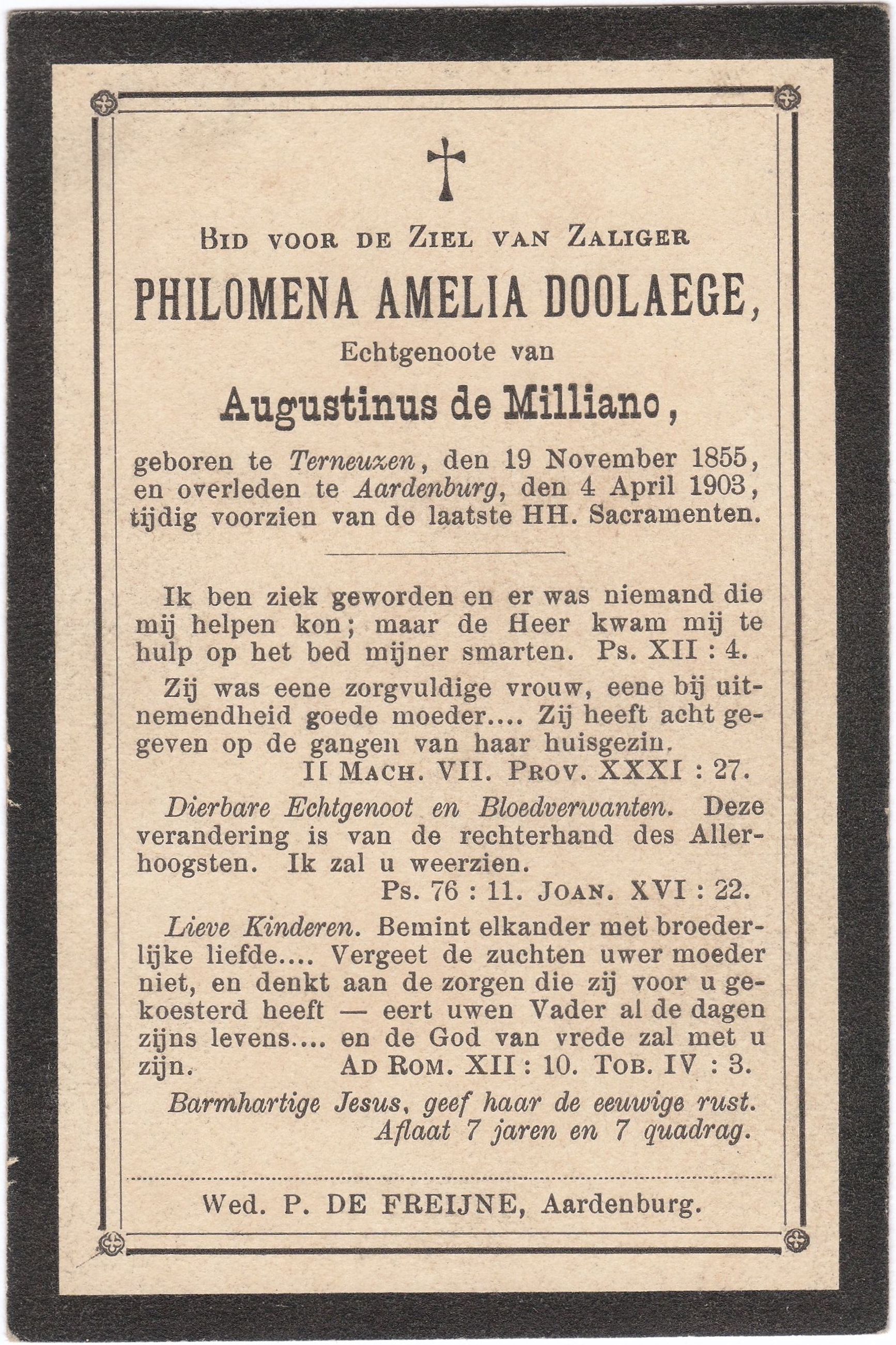Echtgenoote van Augustinus De Milliano,