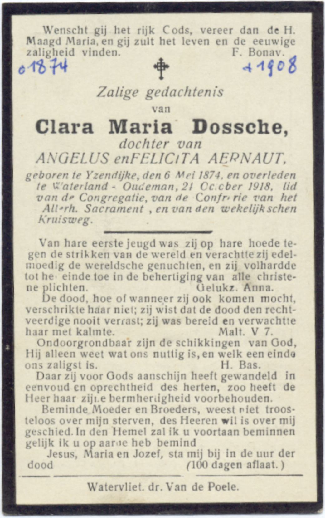 dochter van Angelus Dossche en Felicita Rosalia Aernaut