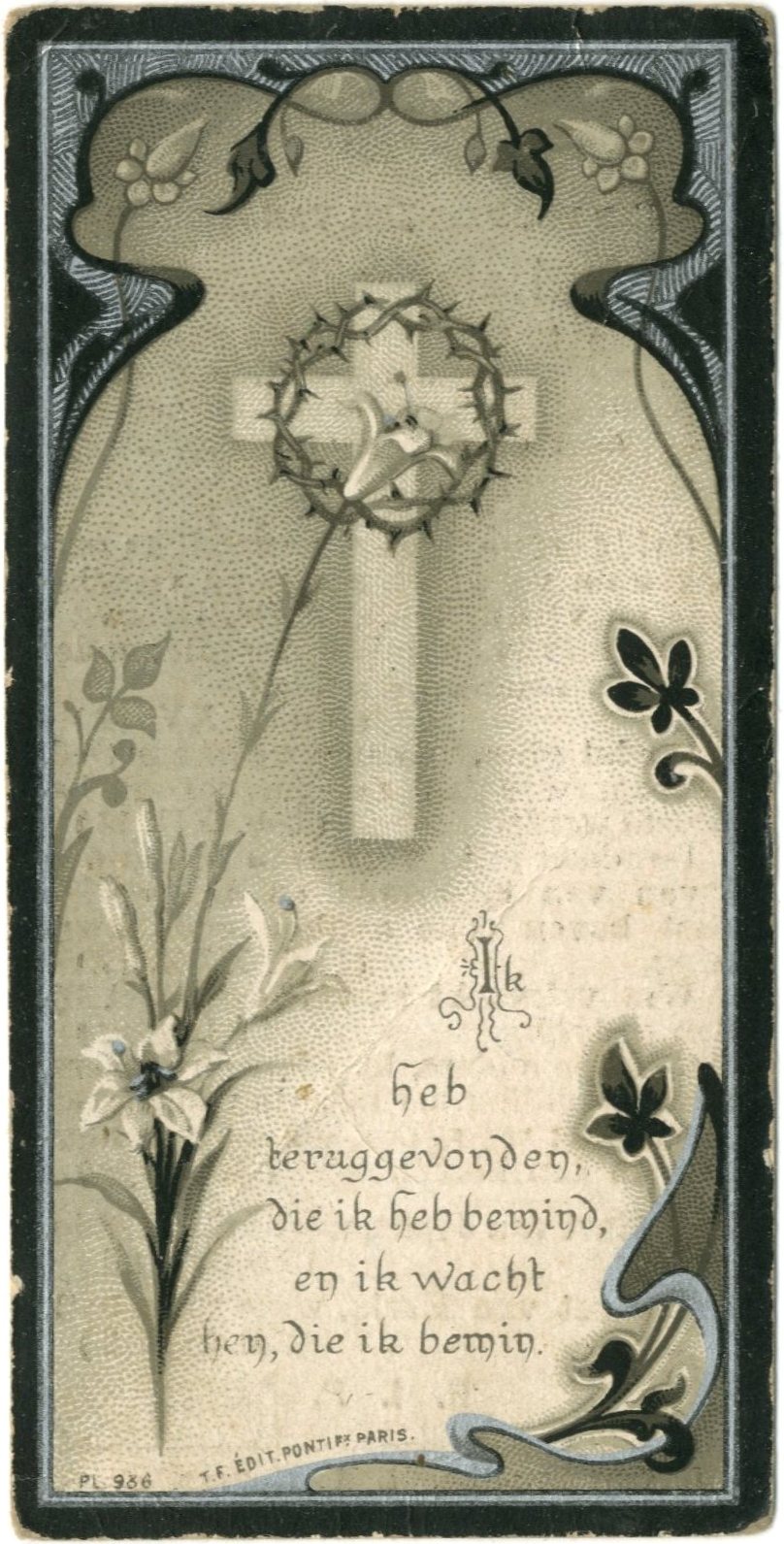 overleden te Groede den 8 December 1913, meermalen gesterkt door de HH. Sacramenten.