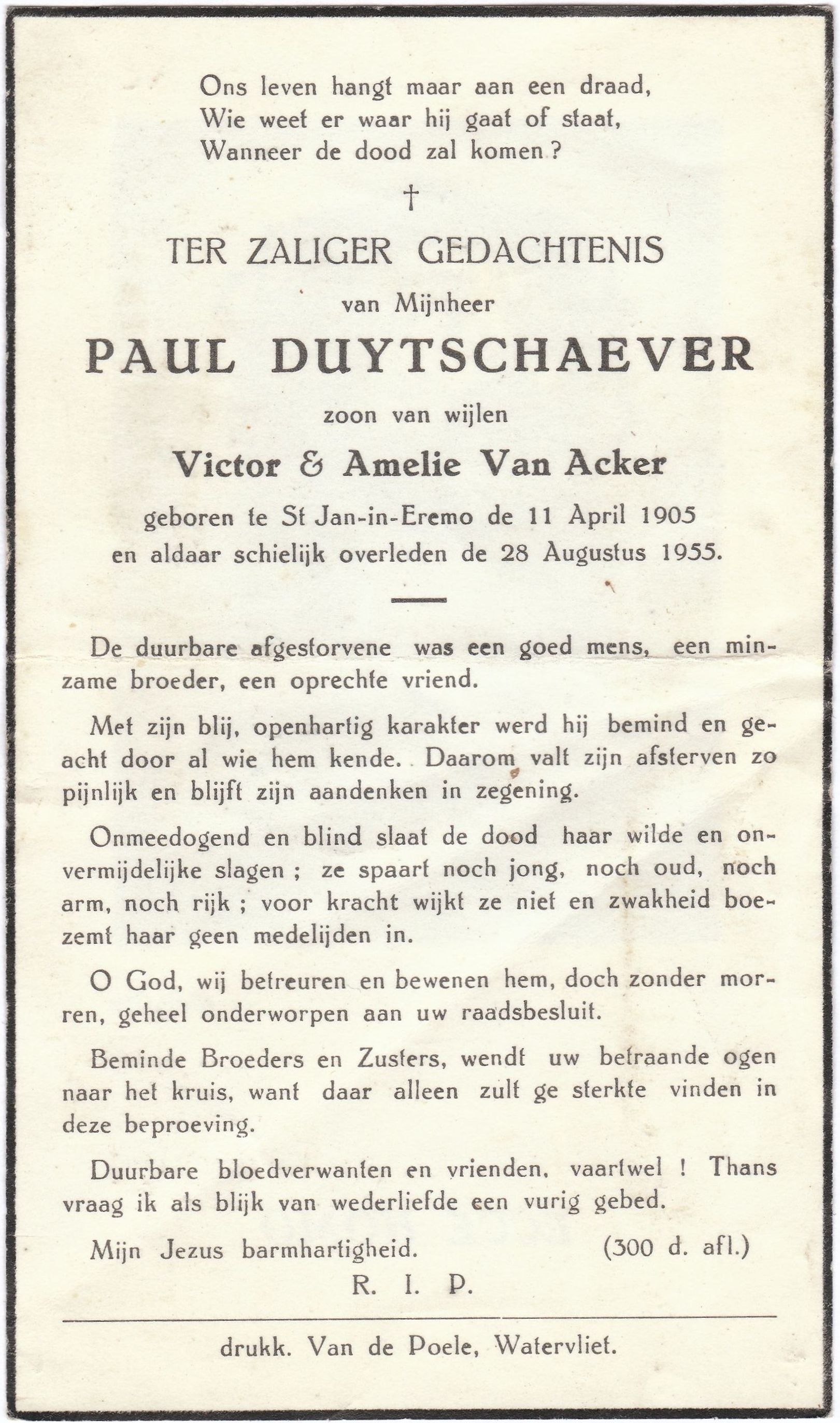 zoon van wijlen Victor Duytschaever en Amelie Van Acker