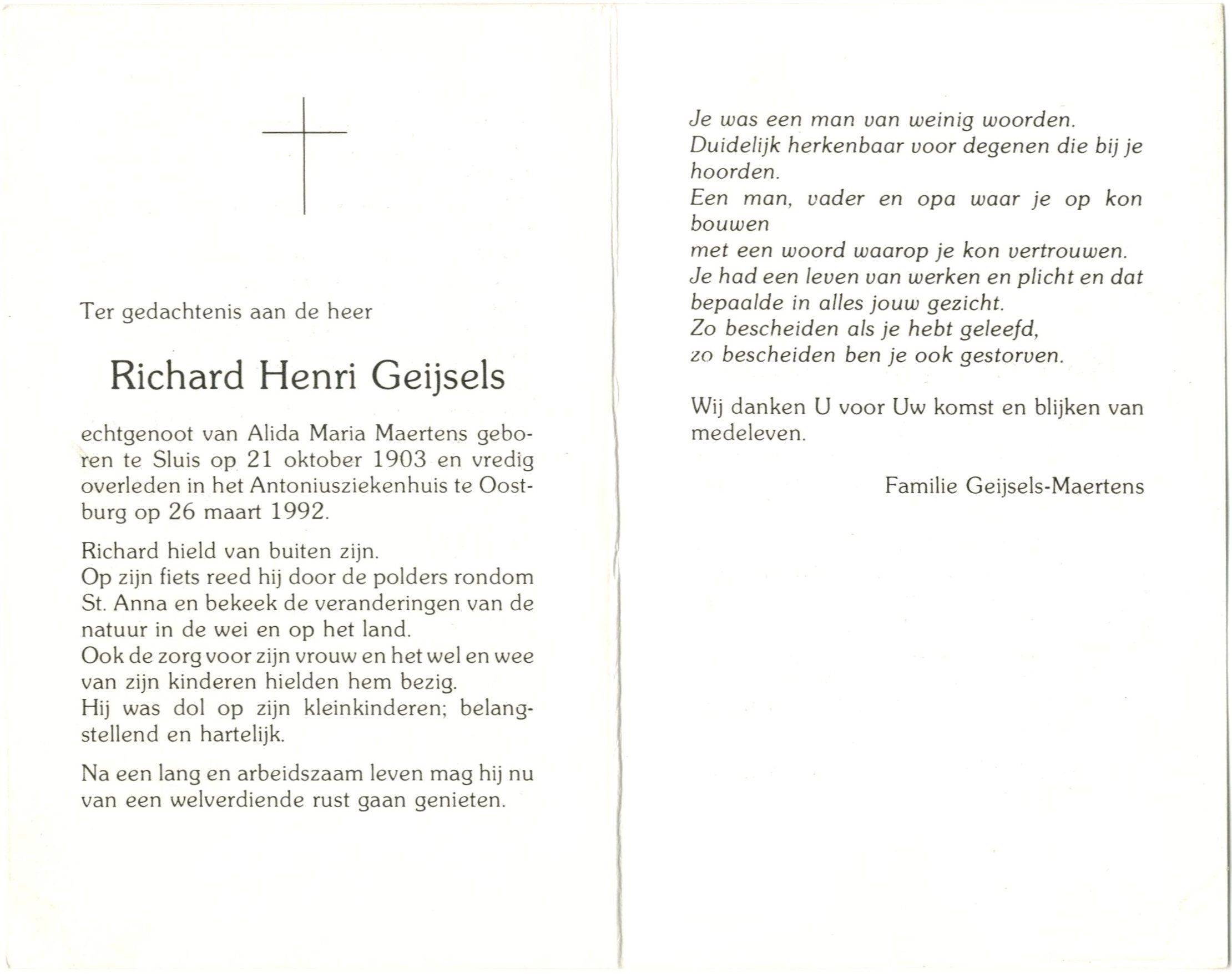 vredig overleden in het Antoniusziekenhuis te Oostburg op 26 maart 1992.