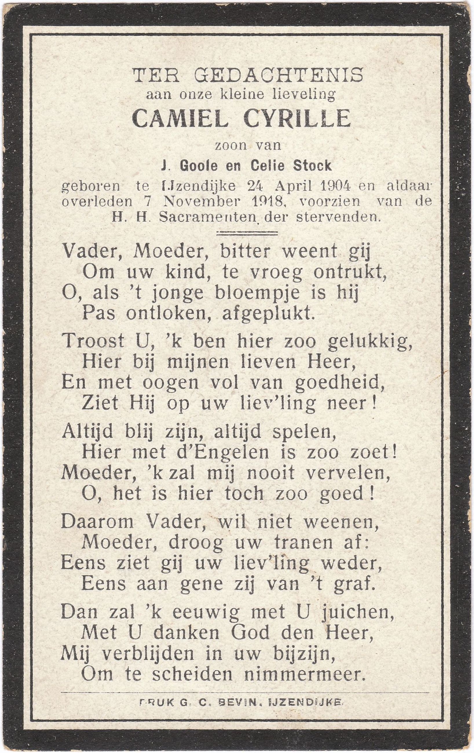 Onze beste dank voor dit aandenken aan Mevr. Hubert Dusarduyn, née Marie-Aimée Van Damme.