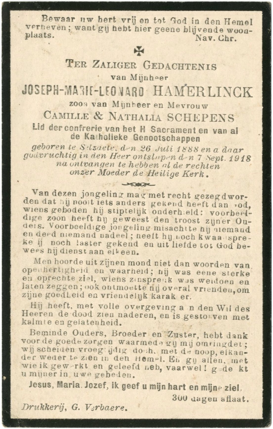 geboren te Selzaete, den 26 Juli 1888 en