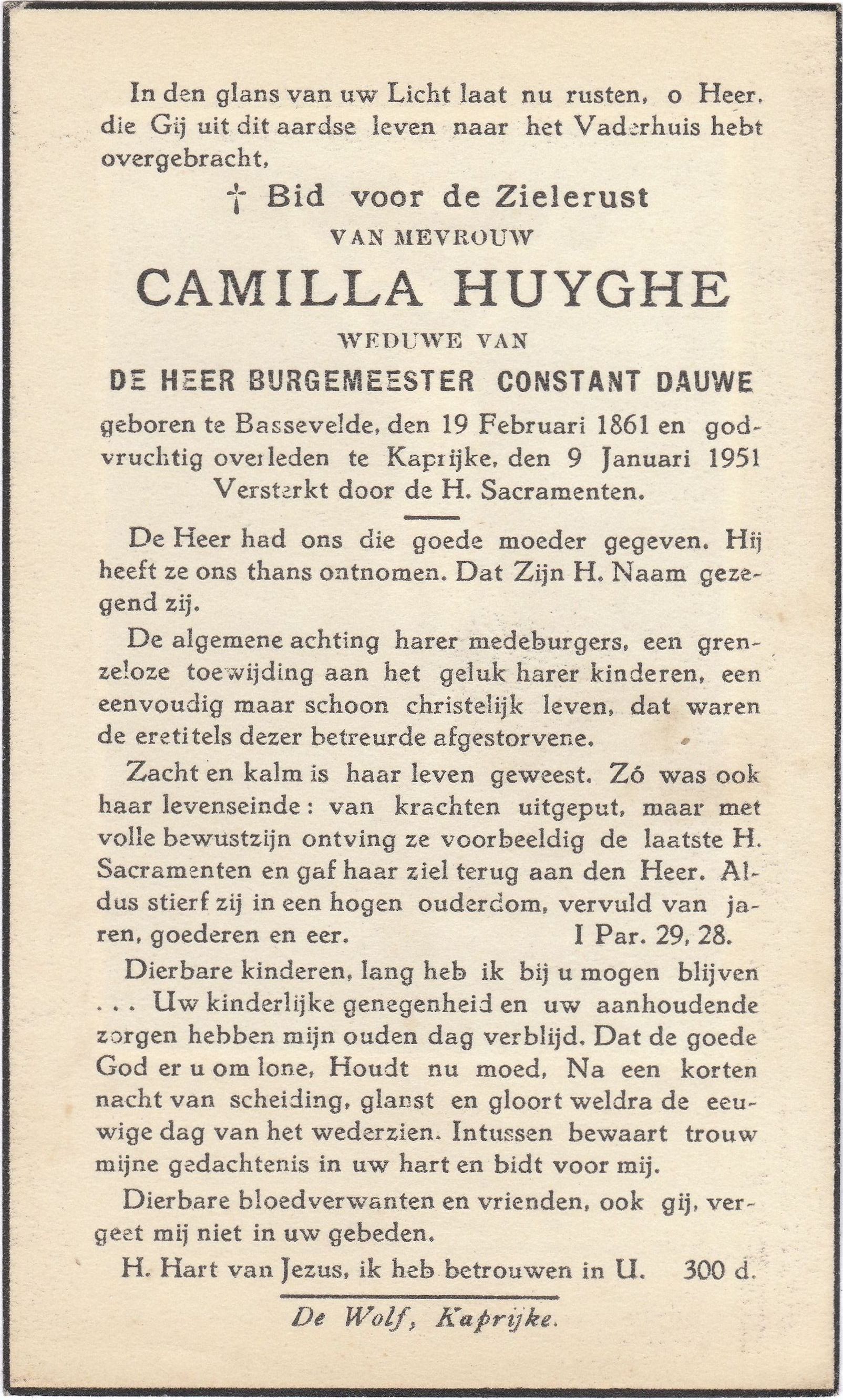 godvruchtig overleden te Kaprijke, den 9 Januari 1951.