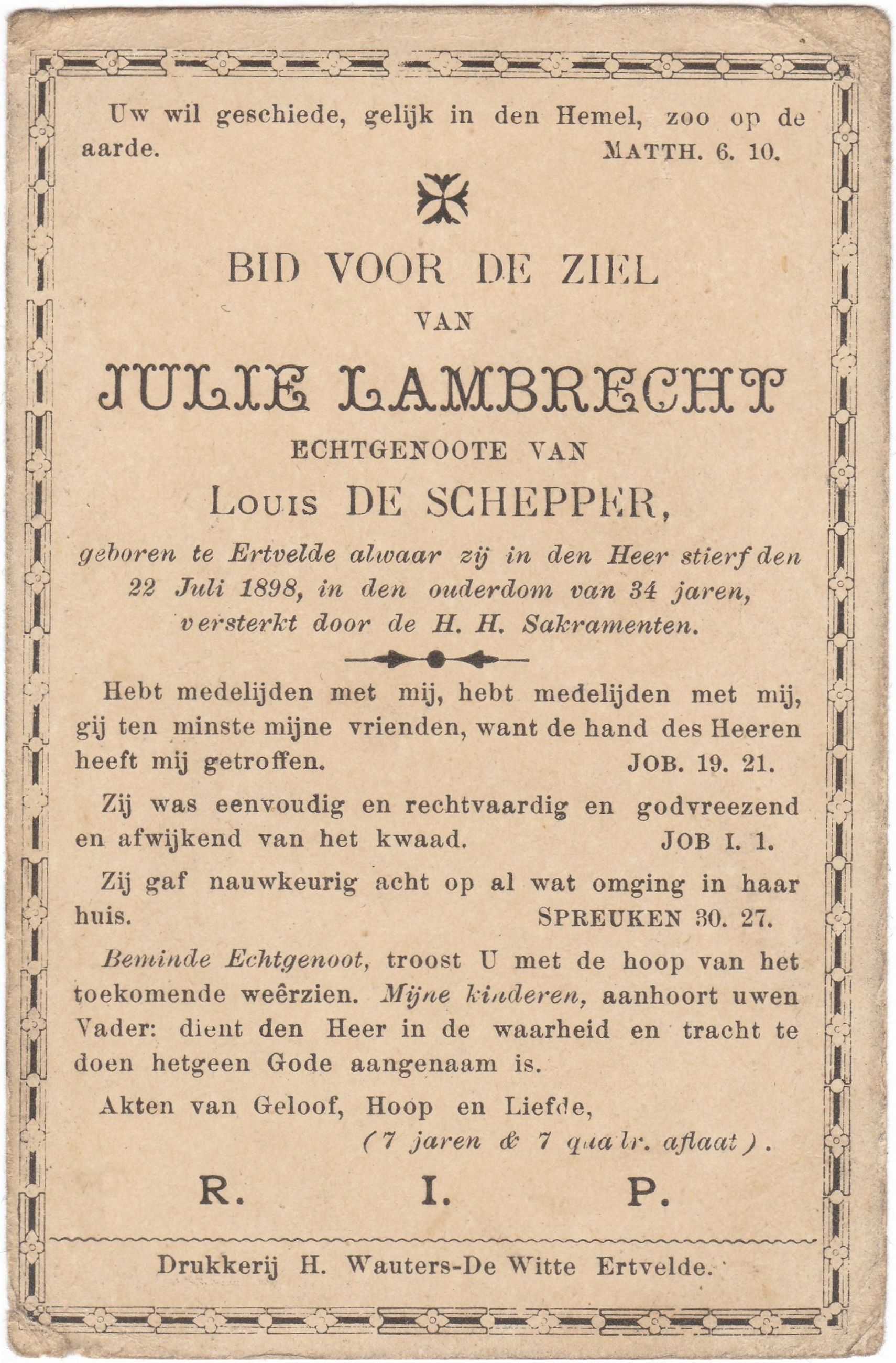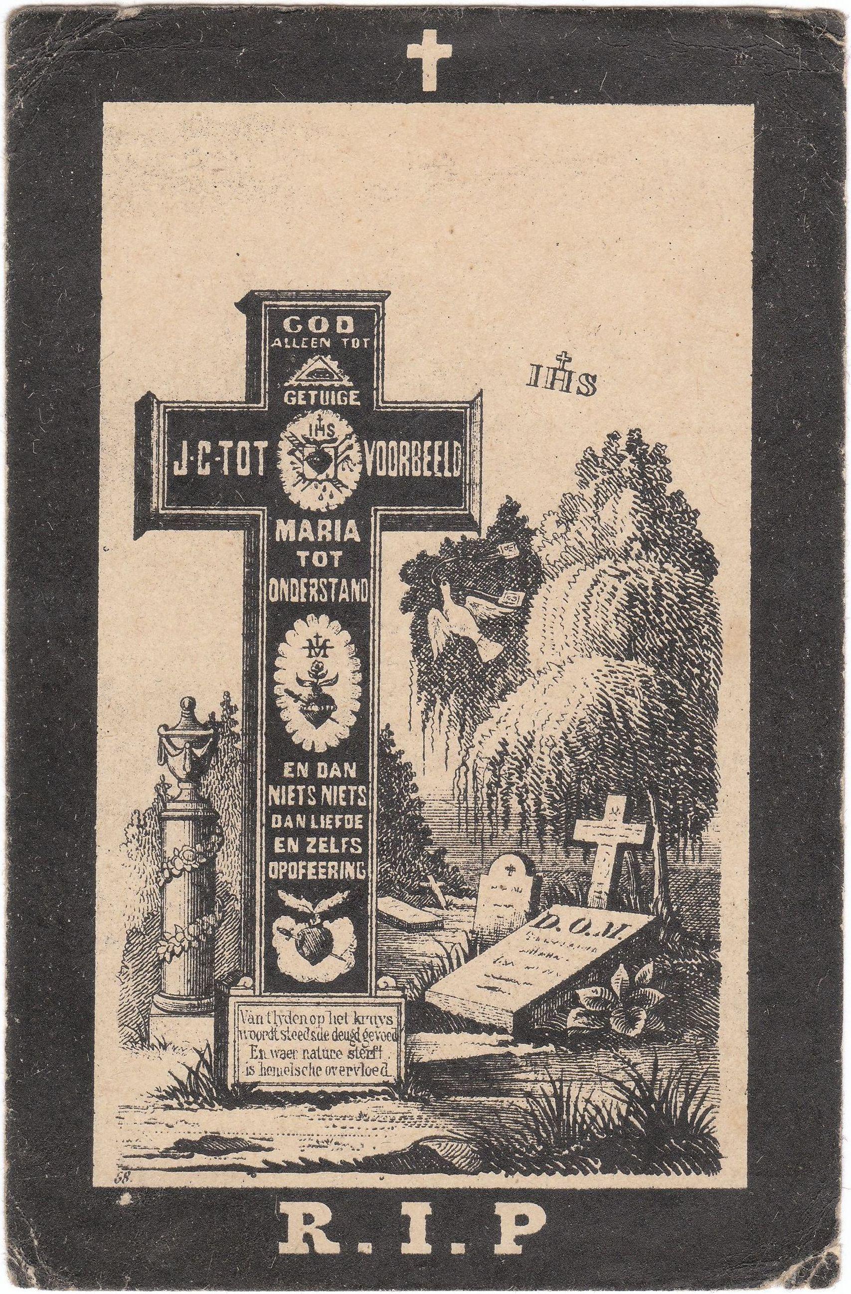 geboren te Ertvelde alwaar zij in den Heer stierf den 22 Juli 1898,