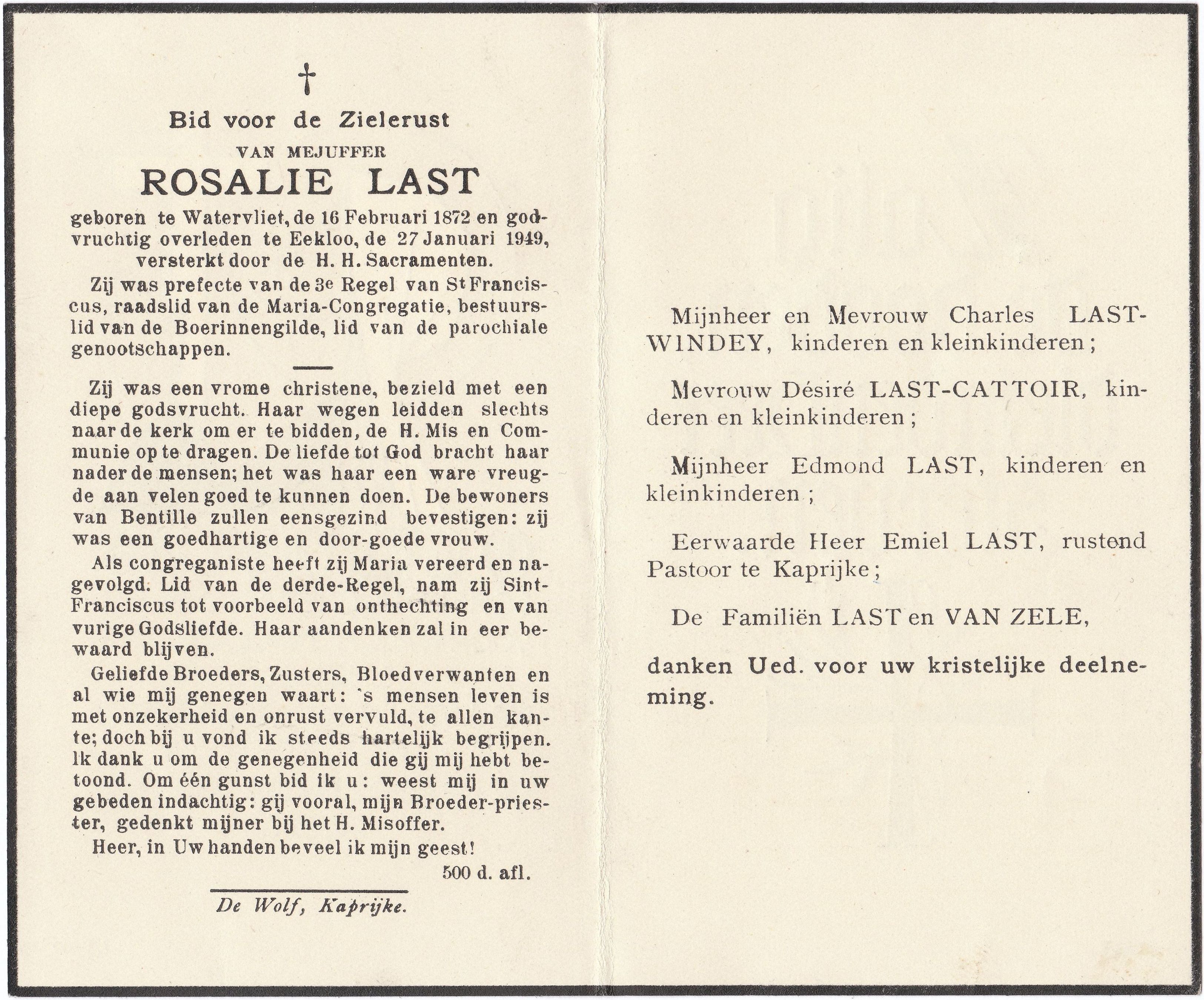 Bid voor de Zielerust van Mejuffer Rosalie Last