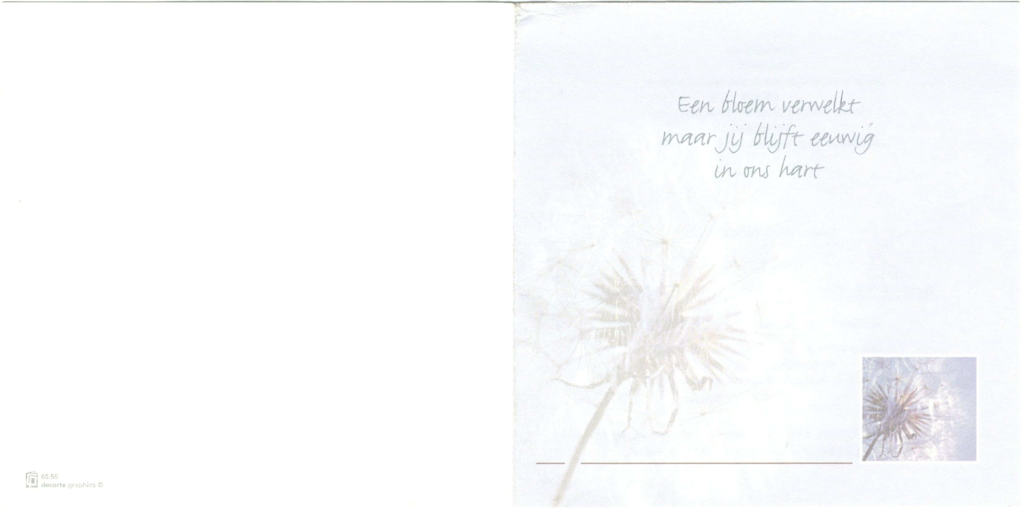 Onze beste dank voor dit aandenken aan Mevr. Leon Lambrecht, née Agnes De Clerck.