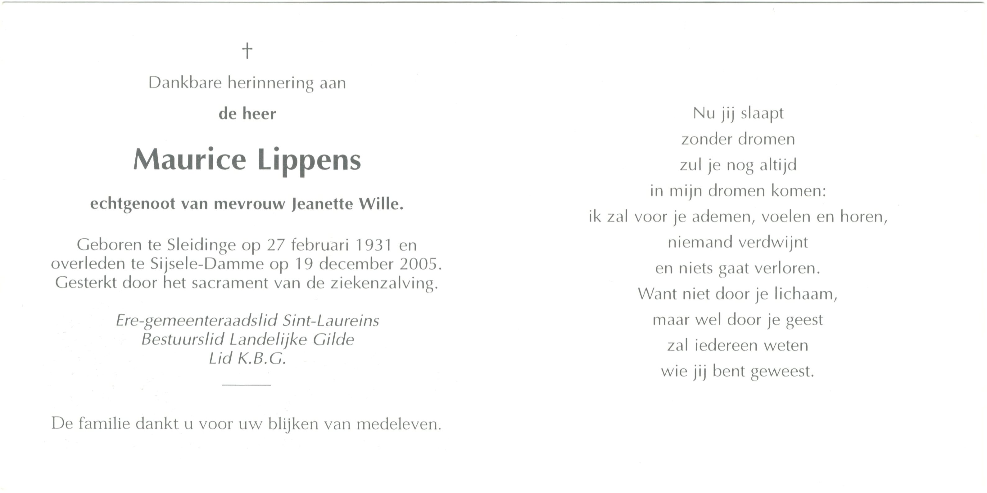 Onze beste dank voor dit aandenken aan Mevr. Leon Lambrecht, née Agnes De Clerck.