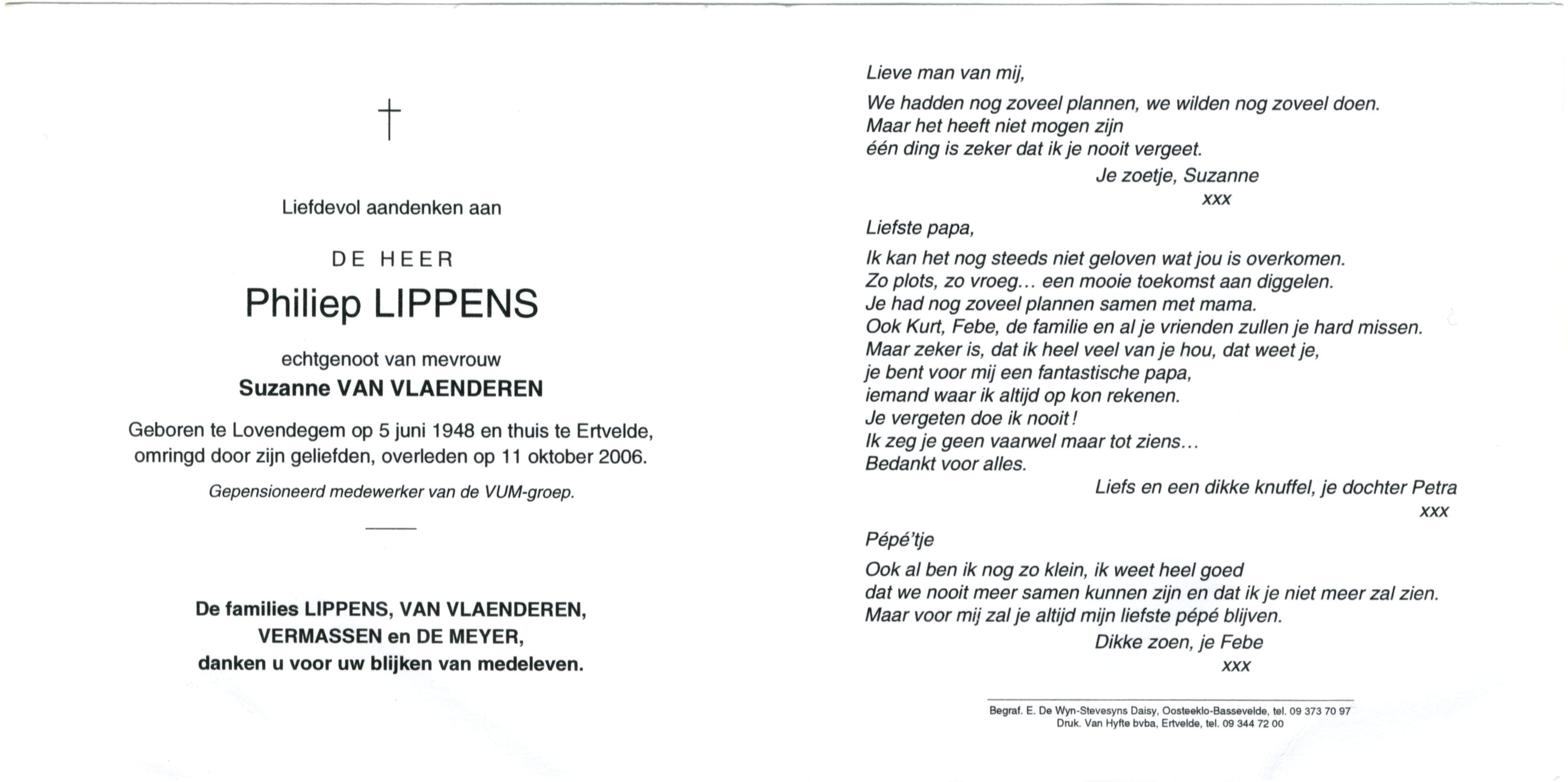 thuis te Ertvelde, omringd door zijn geliefden, overleden op 11 oktober 2006.