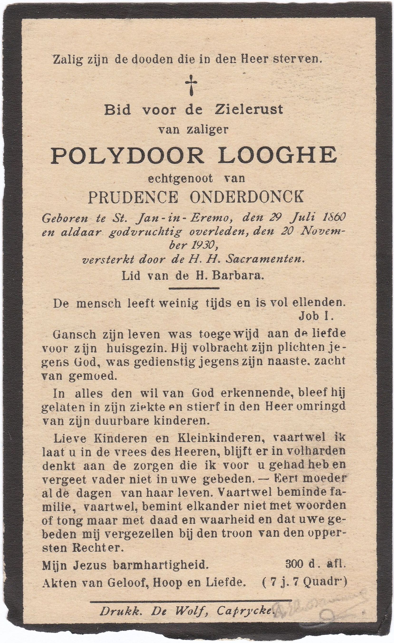 Onze beste dank voor dit aandenken aan Mevr. Hubert Dusarduyn, née Marie-Aimée Van Damme.