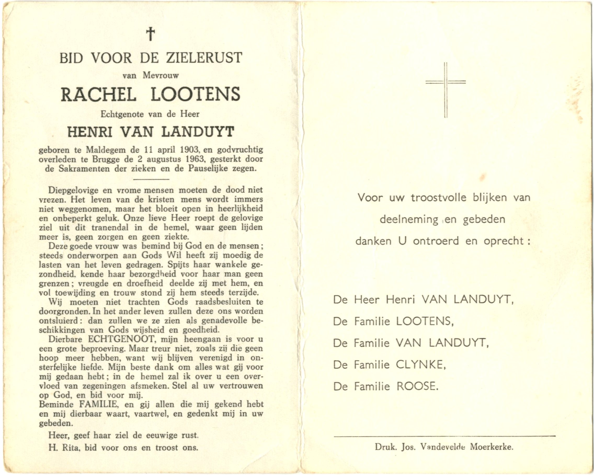 godvruchtig overleden te Brugge de 2 augustus 1963.