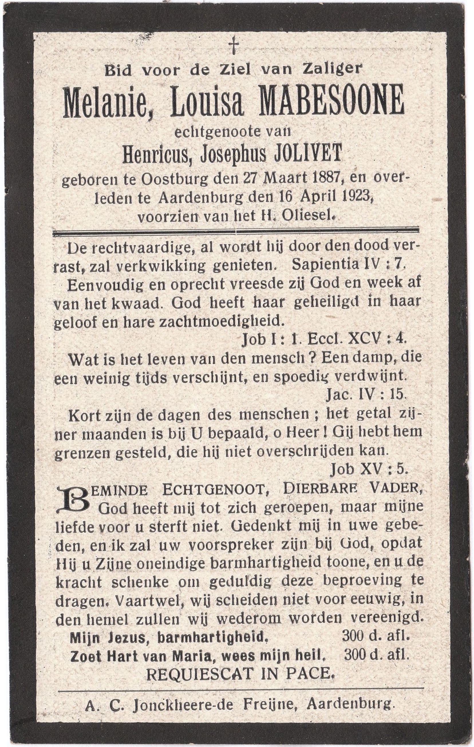 Onze beste dank voor dit aandenken aan Mevr. Hubert Dusarduyn, née Marie-Aimée Van Damme.