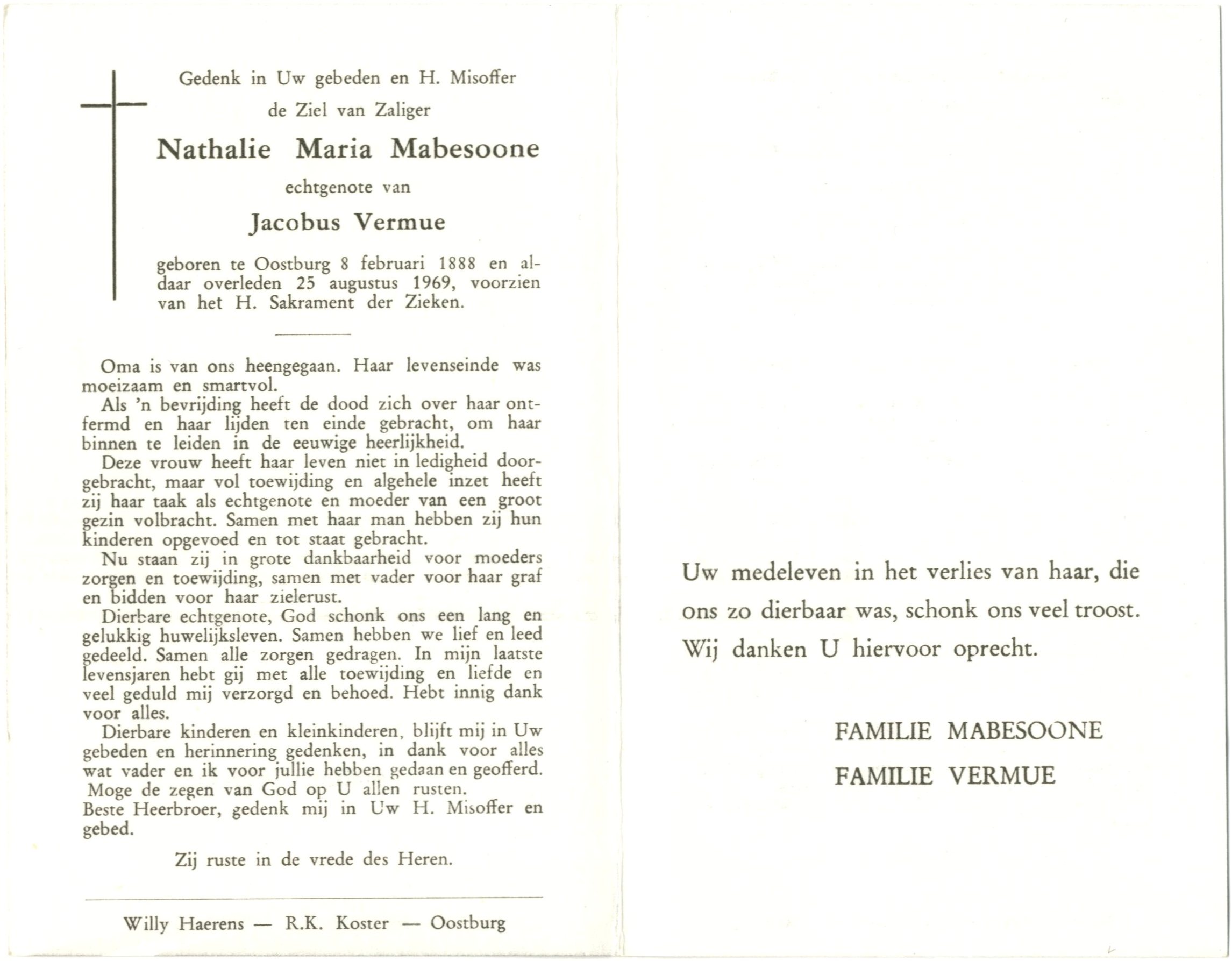 echtgenote van Jacobus Vermue