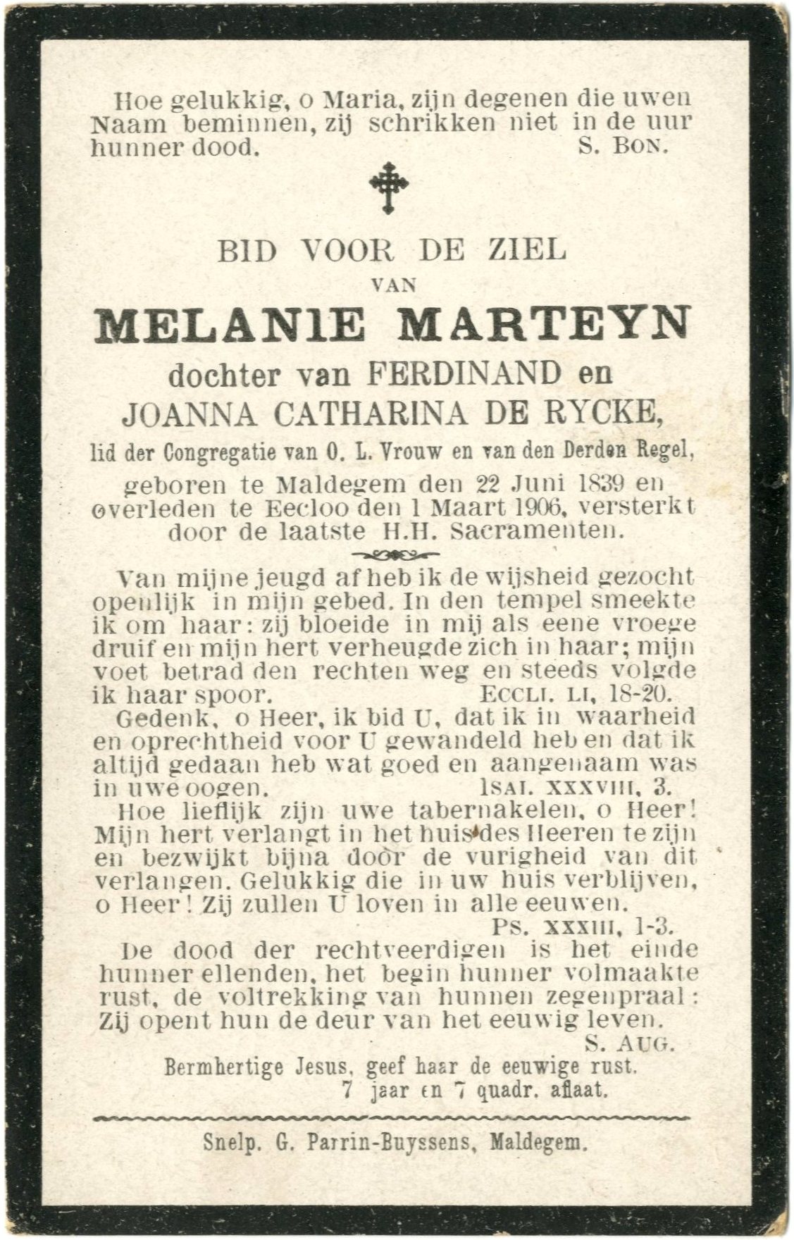 dcohter van Ferdinand Marteyn en Joanna Catharina De Rycke