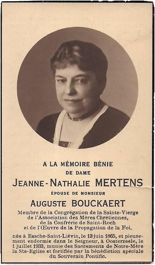 et pieusement endormie dans le Seigneur, à Oosterzeele, le 1 juillet 1933.