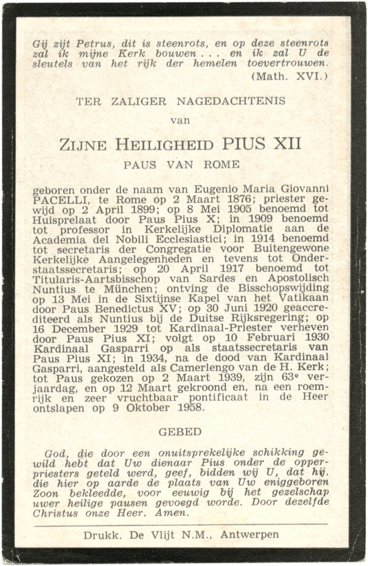 en na een roemrijken zeer vruchtbaar pontificaat in de Heer ontslapen op 6 Oktober 1958.