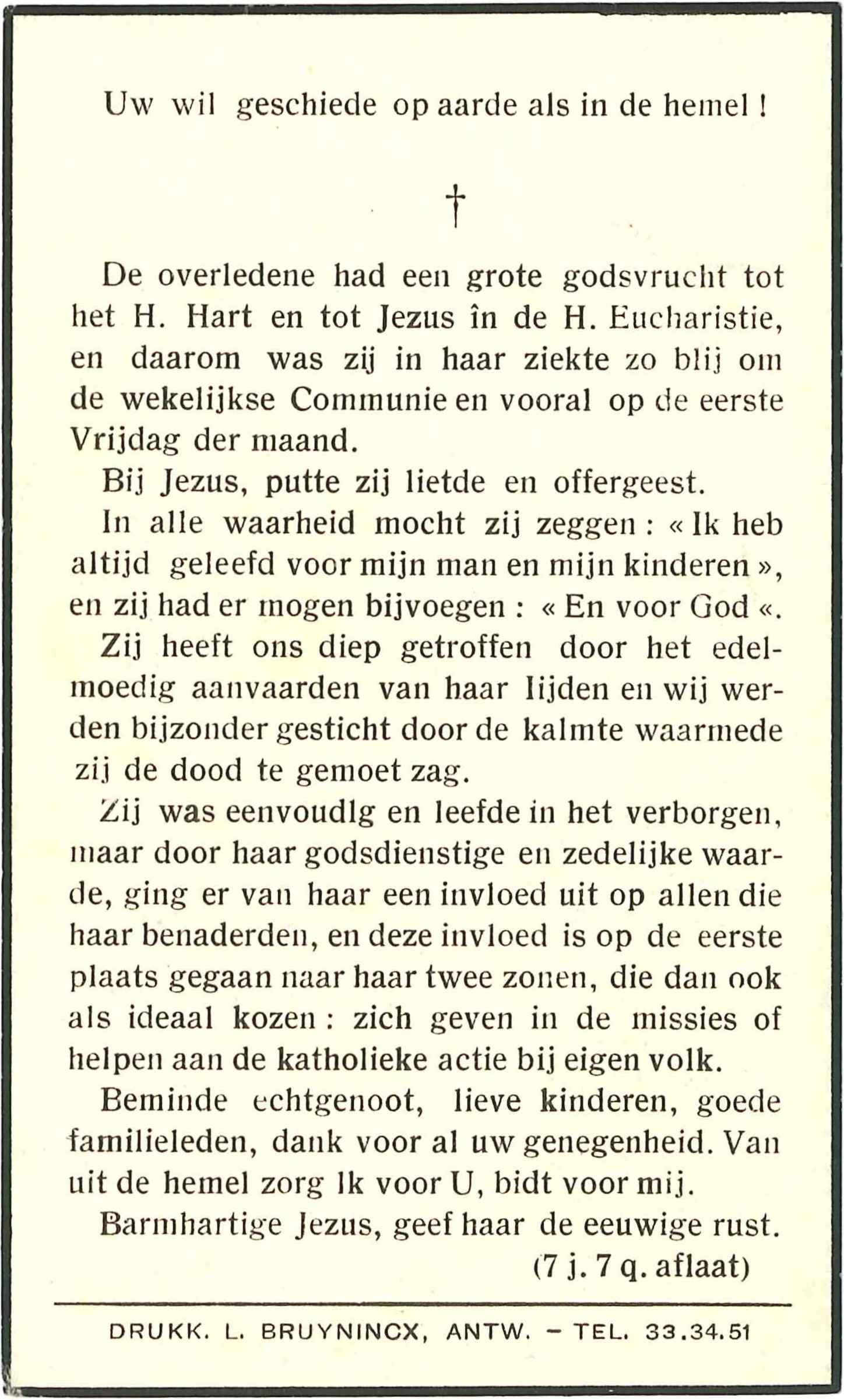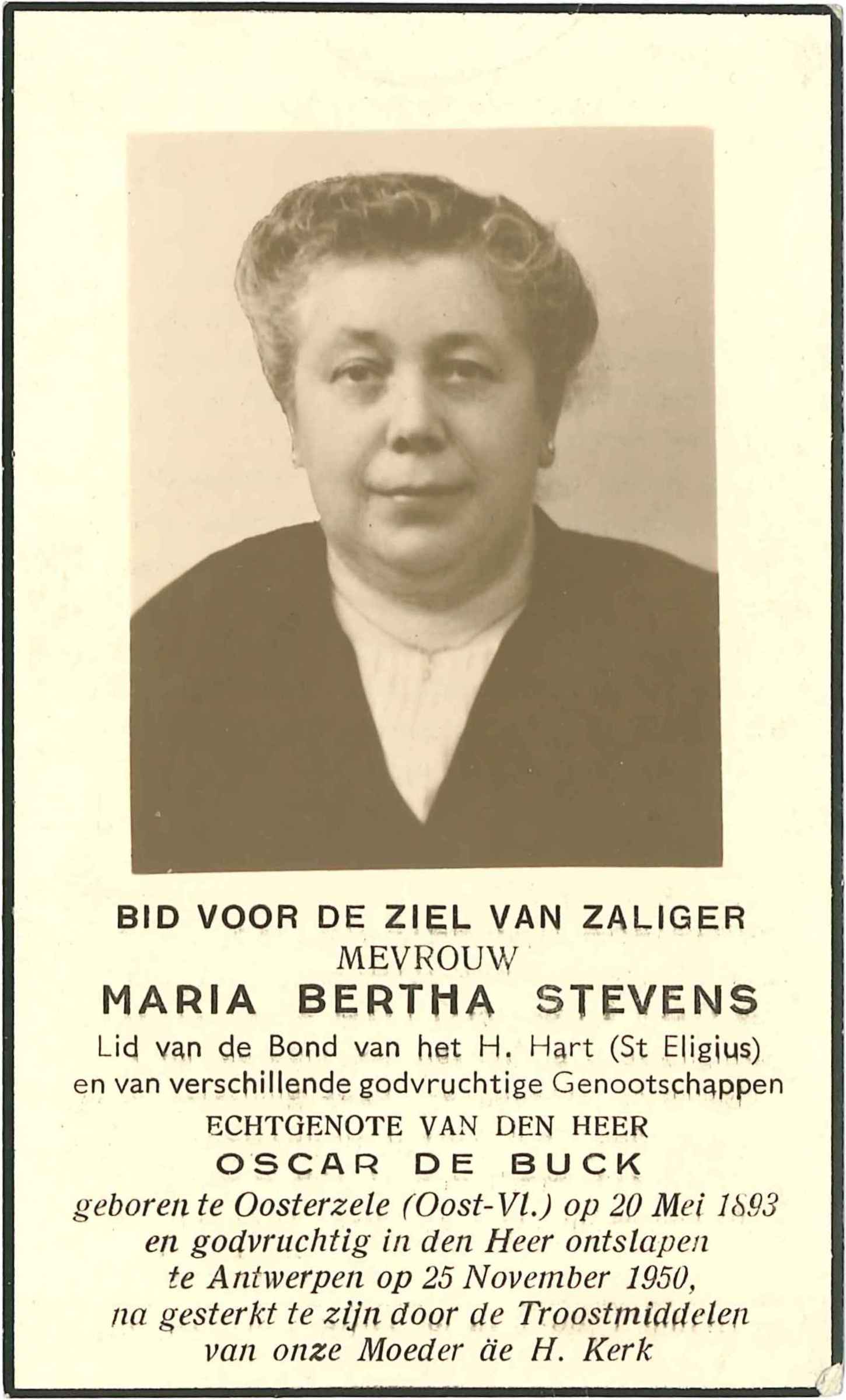 Onze beste dank voor dit aandenken aan Mevr. Oscar Maesen, née Rose-Anne Van Damme.