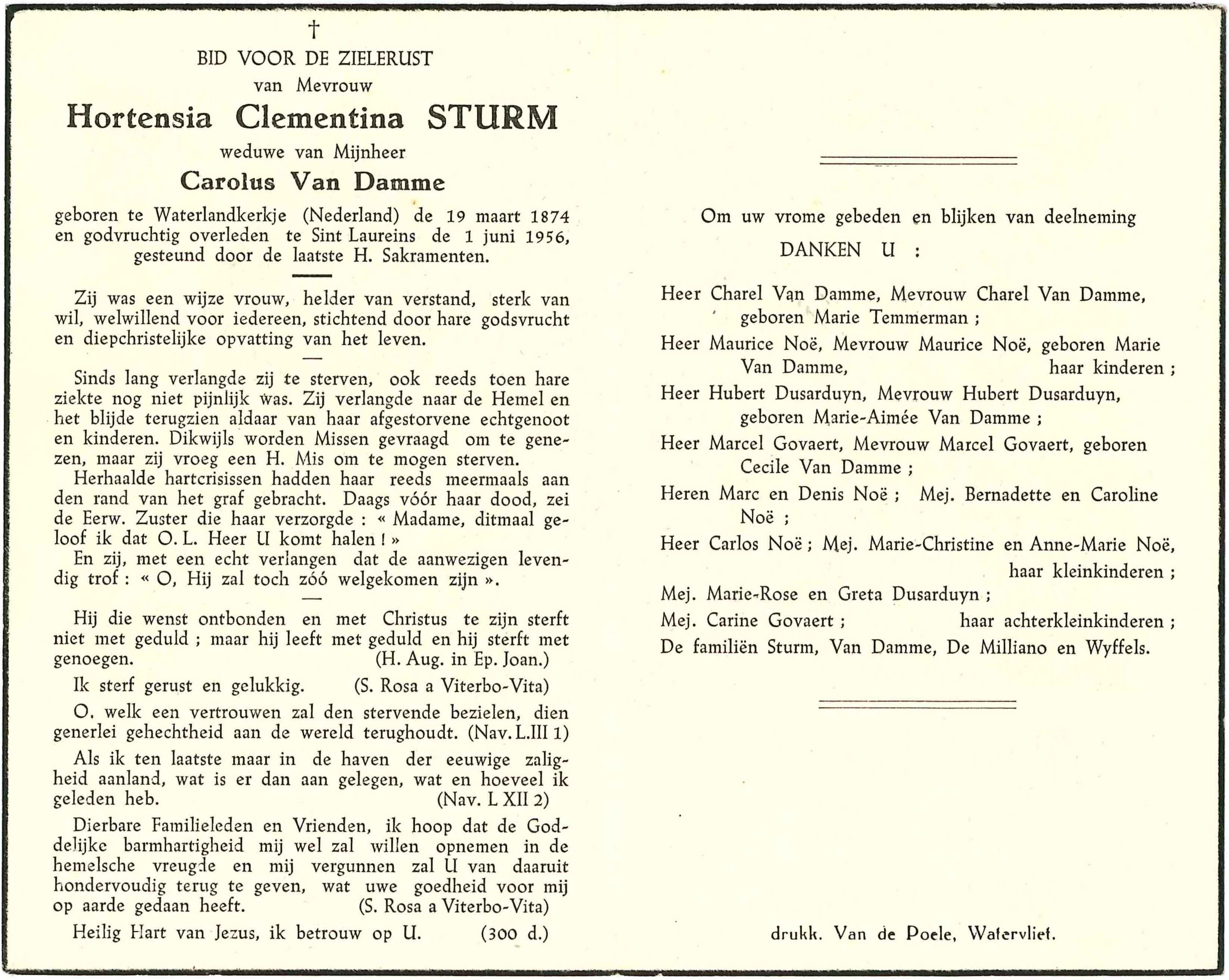 Onze beste dank voor dit aandenken aan Mevr. Hubert Dusarduyn, née Marie-Aimée Van Damme.