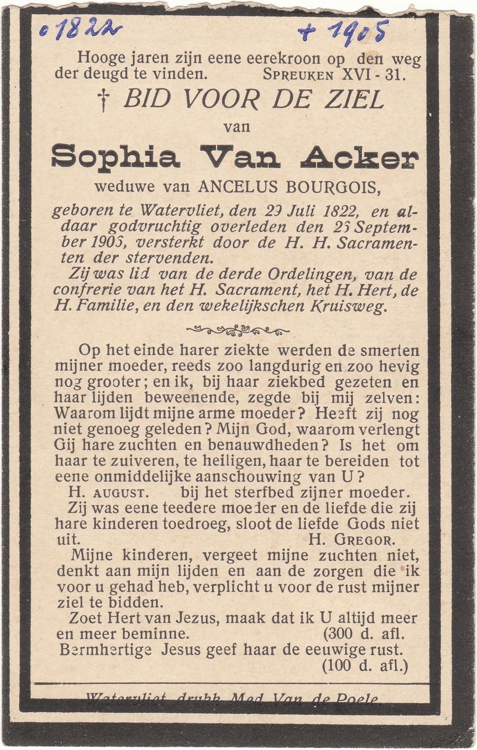 en aldaar godvruchtig overleden den 25 September 1905.