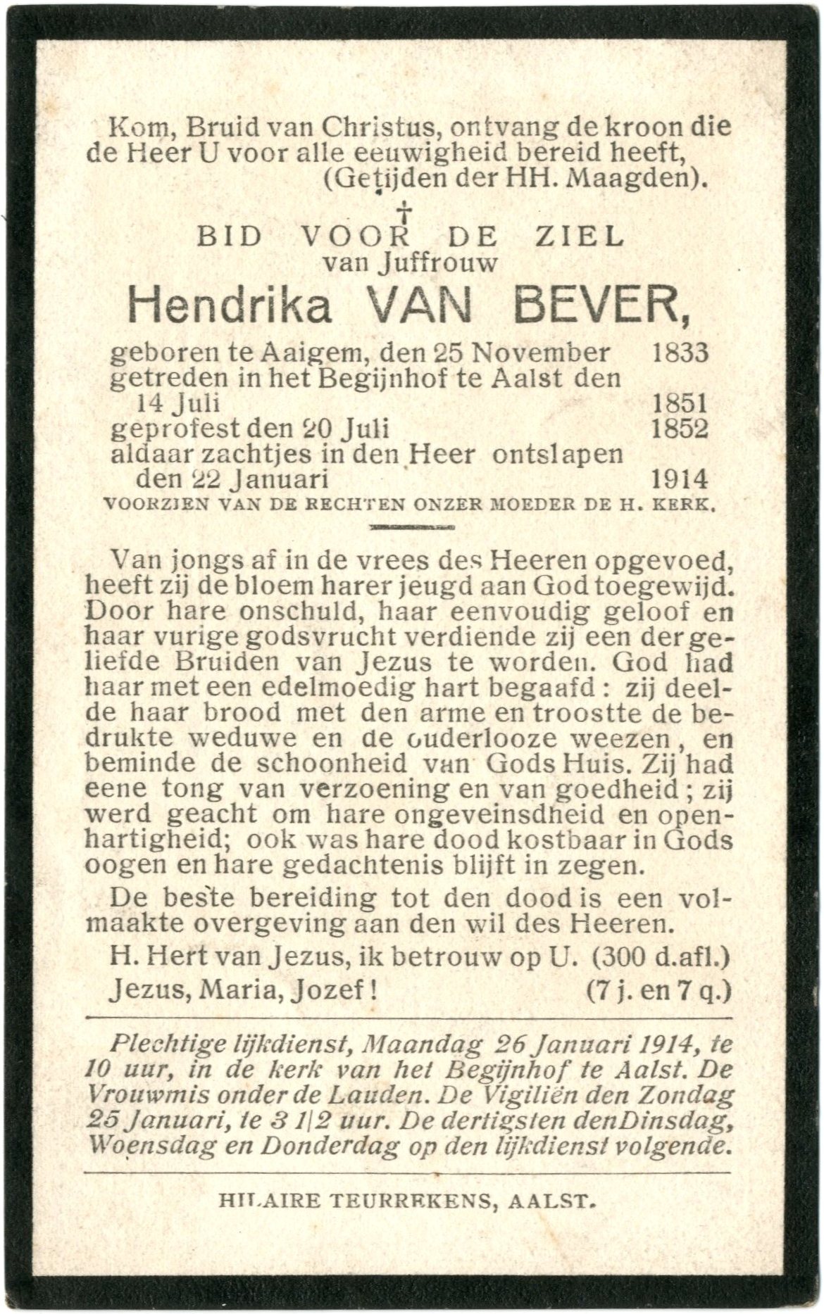 getreden in het Begijnhof te Aalst den 14 Juli 1851