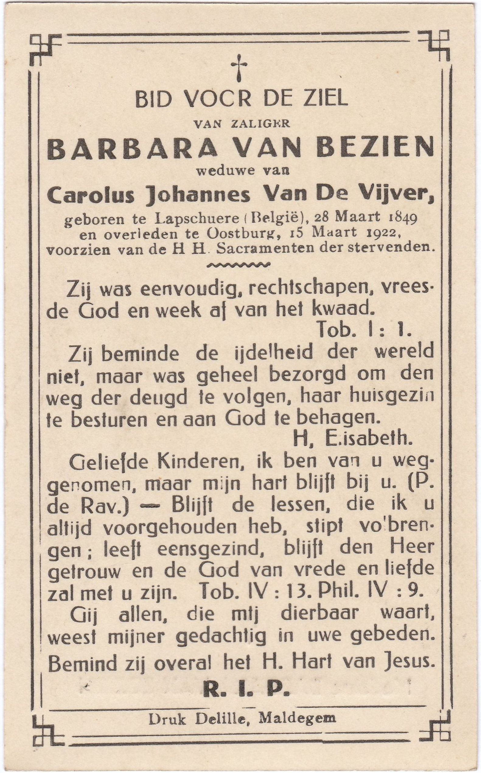 en overleden te Oostburg, 15 Maart 1922.