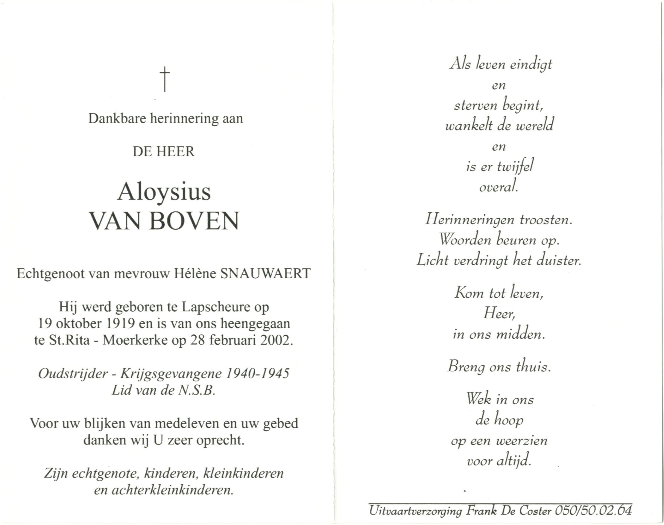 is van ons heengegaan te St. Rita - Moerkerke op 28 februari 2002.
