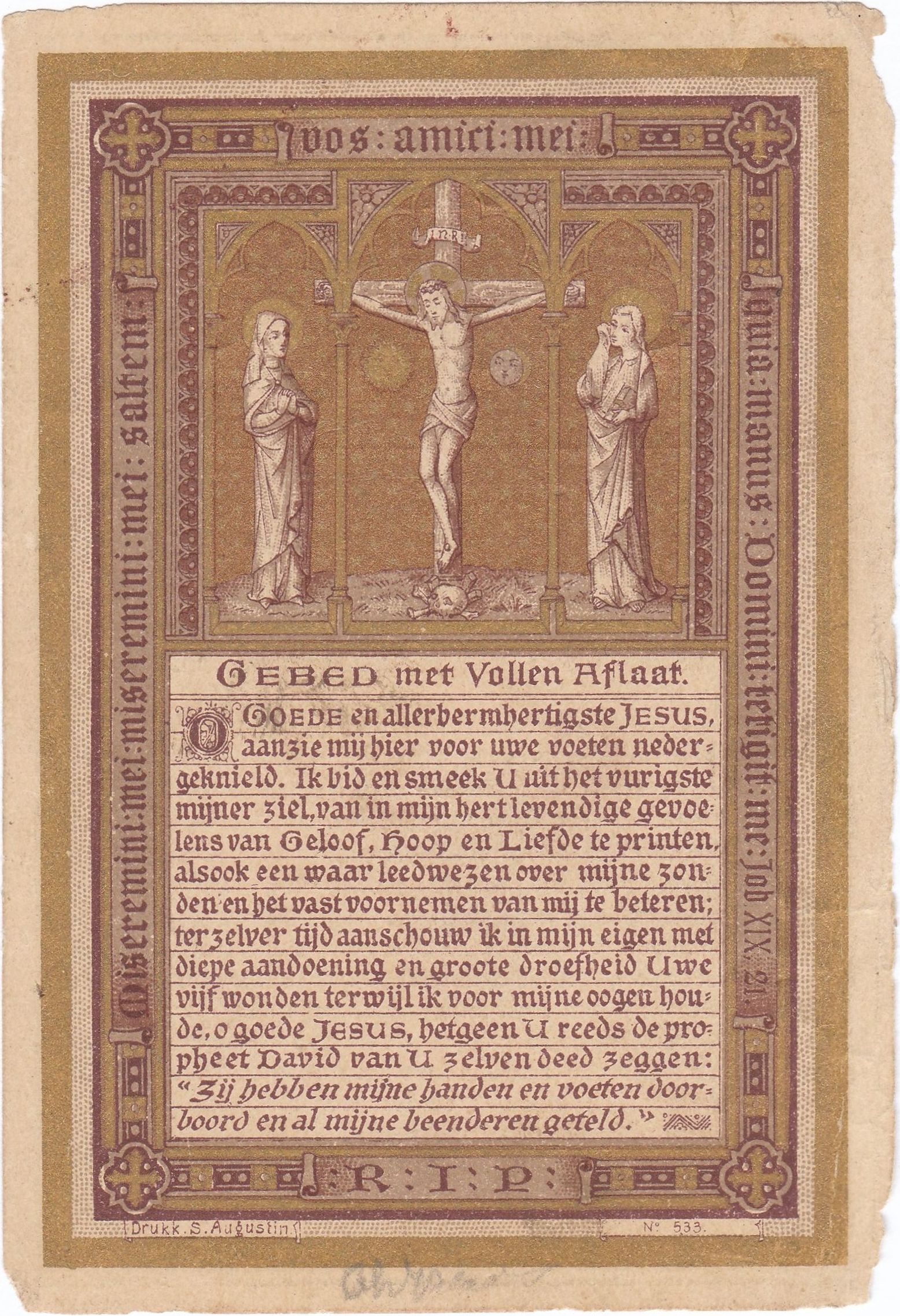 godvruchtig en zacht in den Heer ontsliep te Coolkerke den 6 Maart 1928.
