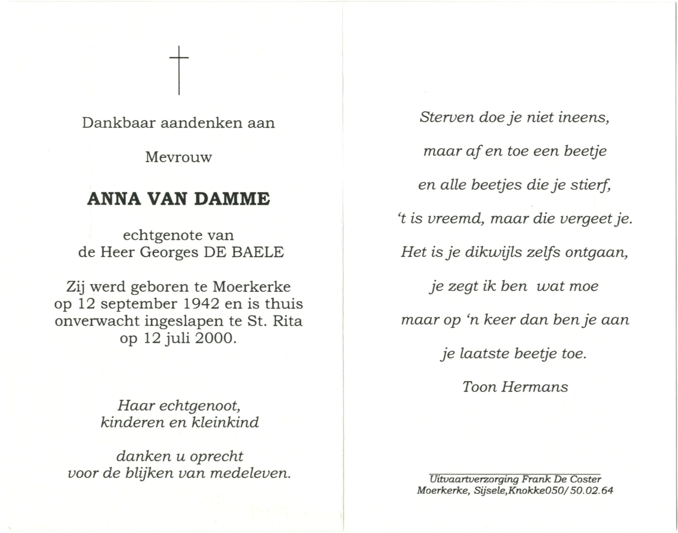 en is thuis onverwacht ingeslapen te St. Rita op 12 juni 2000.