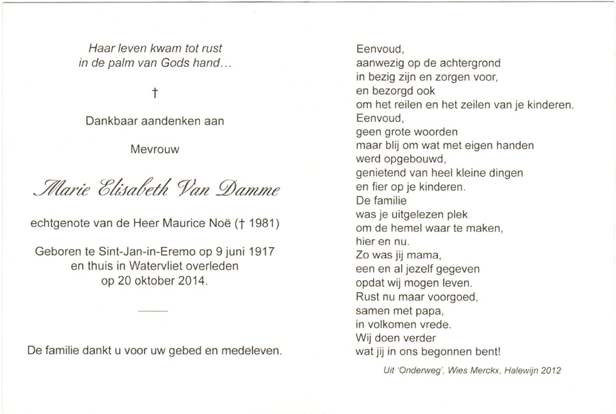 en thuis in Watervliet overleden op 20 oktober 2014.