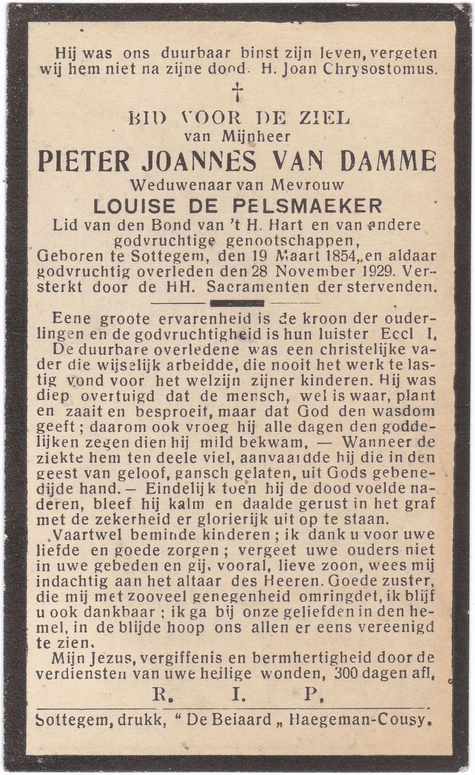 Geboren te Sottegem, den 19 Maart 1854,