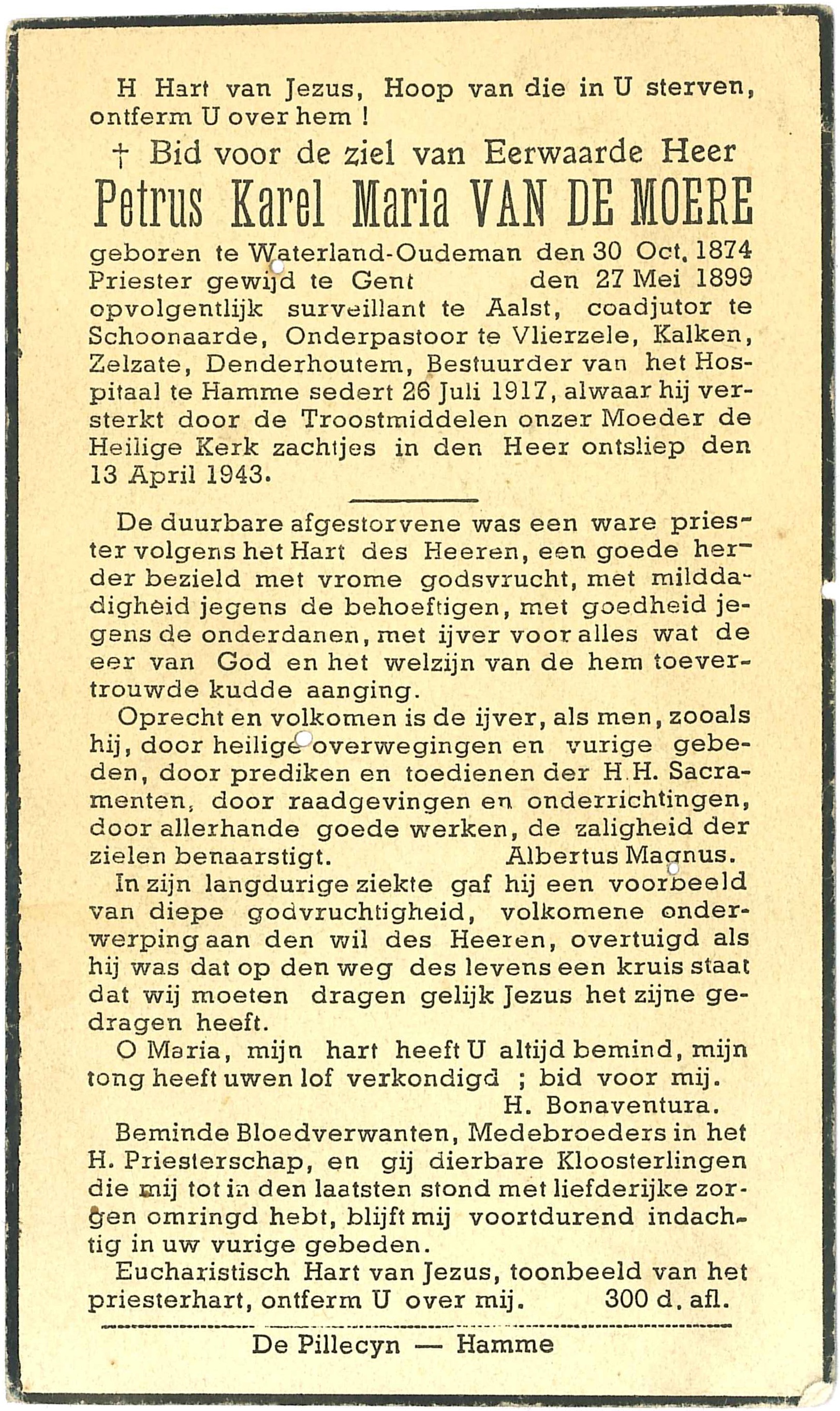 Bid voor de ziel van Eerwaarde Heer Petrus Karel Maria Van De Moere