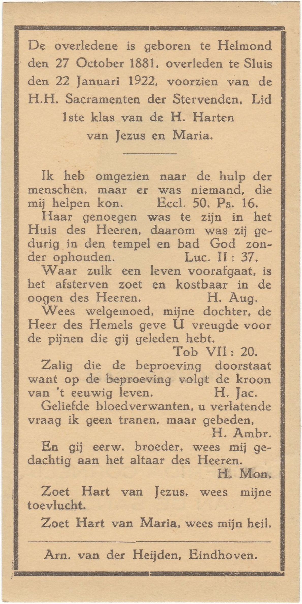 Onze beste dank voor dit aandenken aan Mevr. Hubert Dusarduyn, née Marie-Aimée Van Damme.